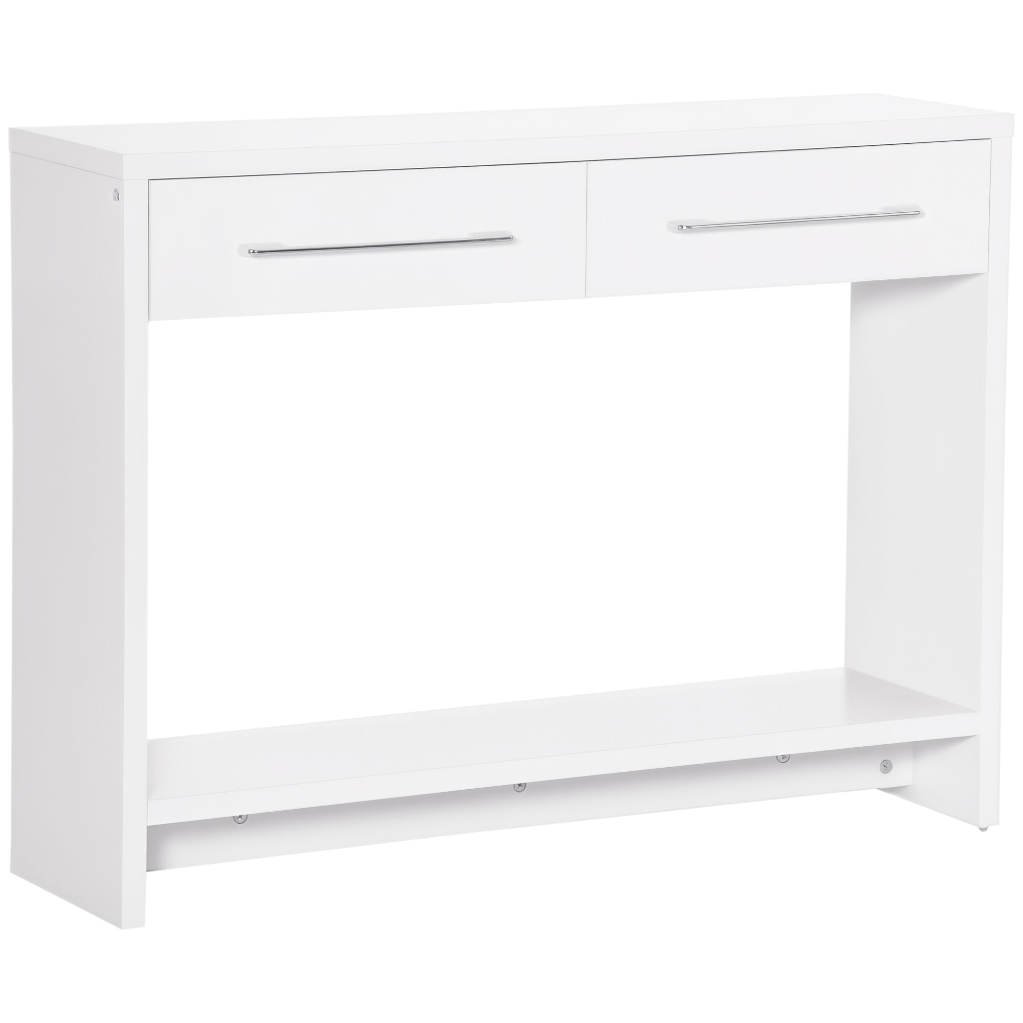 HOMCOM Console Tafel Ingangstafel met 2 Lades en Opbergplank Hal Console Tafel voor Woonkamer Moderne Stijl Anti-Tip 50 kg Capaciteit 101,6x28x76,2 cm Wit