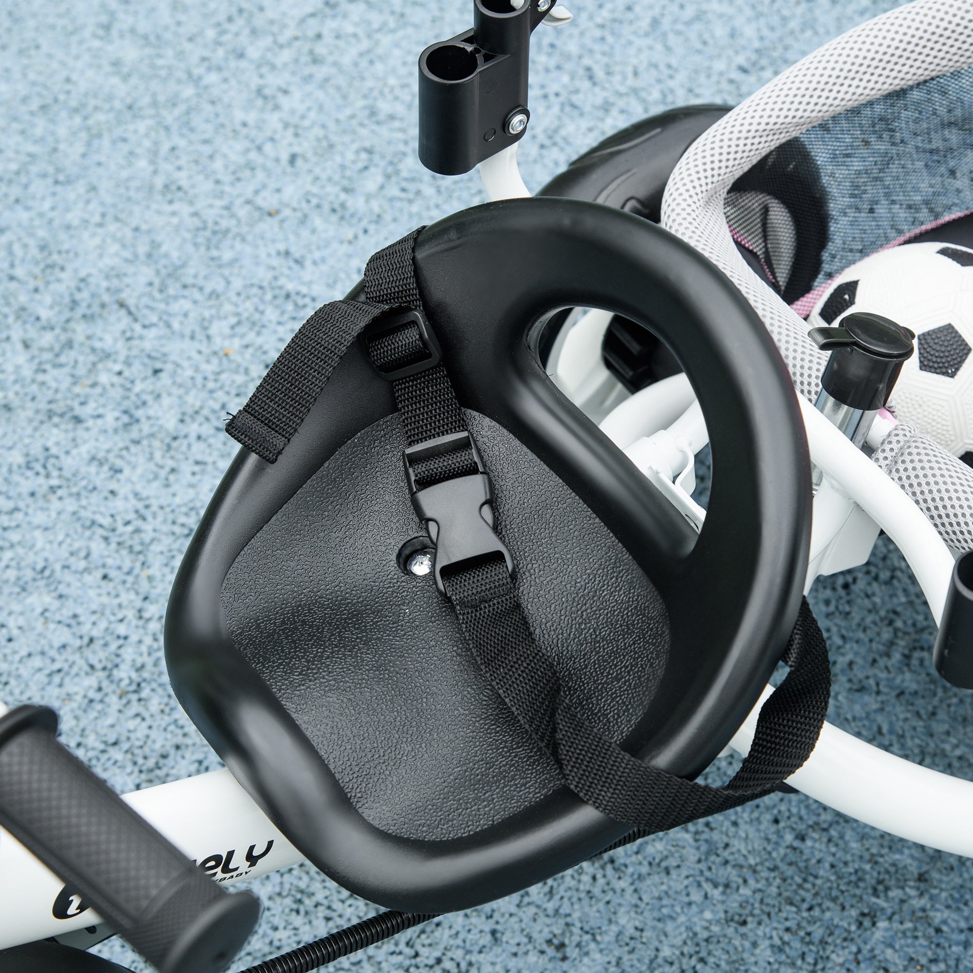 - - VERSTELBAAR ONTWERP: Het stuur van de driewieler is in hoogte verstelbaar en afneembaar. De verstelbare luifel biedt schaduw en bescherming tegen de zon, terwijl de veiligheidsgordel en afneembare bar de veiligheid van uw baby waarborgen
