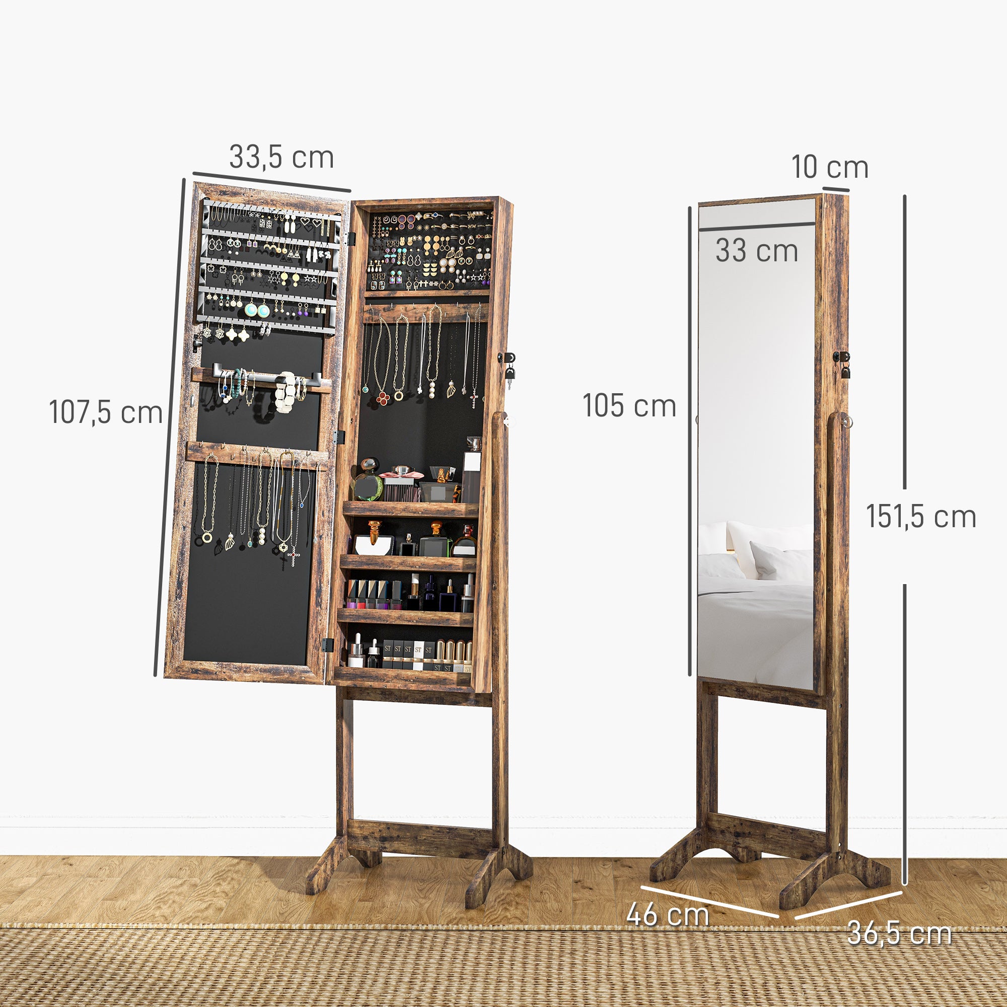 HOMCOM Volledige Lengte Spiegel Sieraden Armoire met 3 Verstelbare Hoeken Magnetische Sluiting Sieraden Organizer met Planken en Vakken voor Oorbellen Ringen Kettingen 46x36,5x151,5 cm Rustiek Bruin