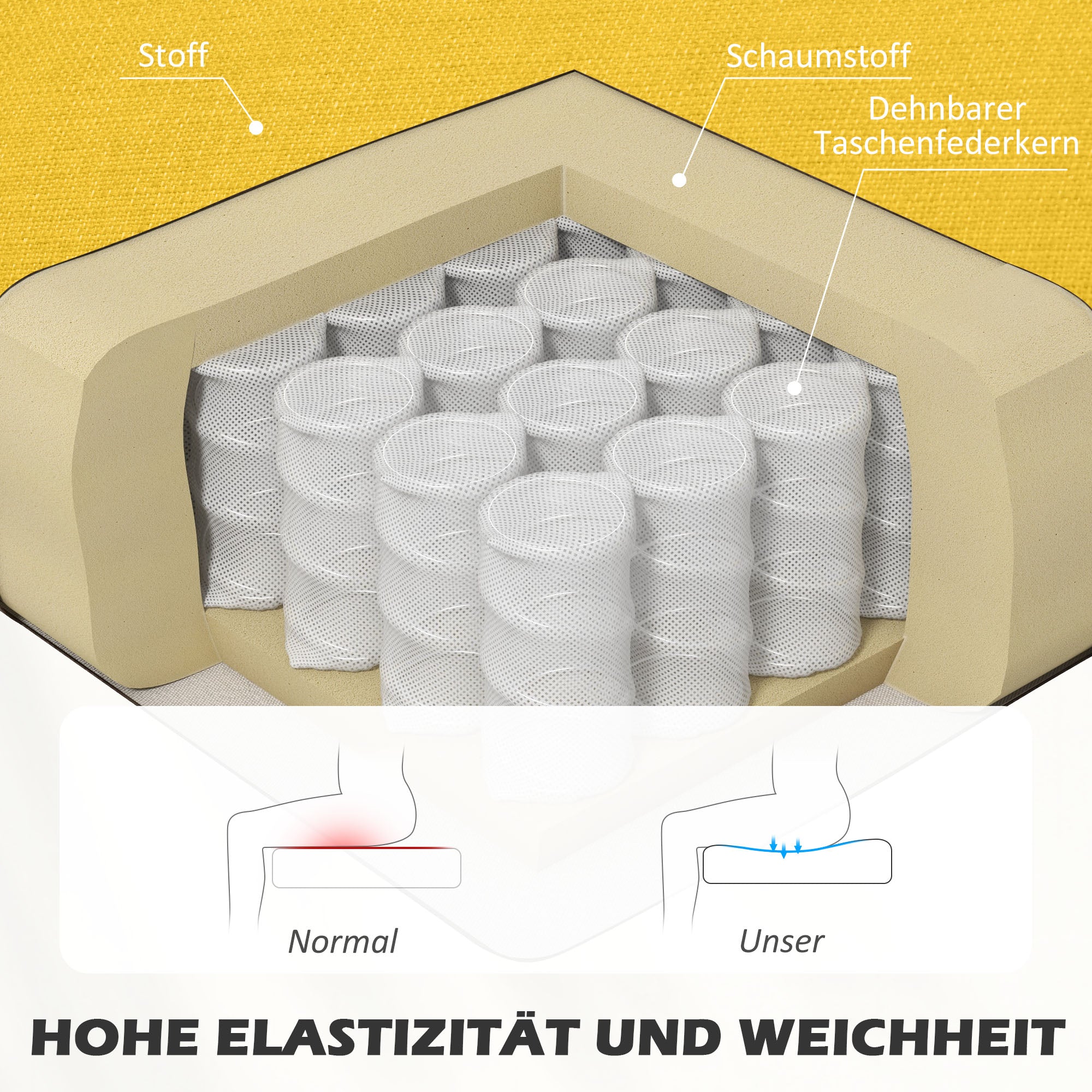 HOMCOM 2-Zits Stoffen Sofa Gevoerde Sofa Dubbele Sofa Retro Uiterlijk Zithouding Meubilair Lounge Sofa Houten Frame Geel 117 x 56,5 x 77 cm