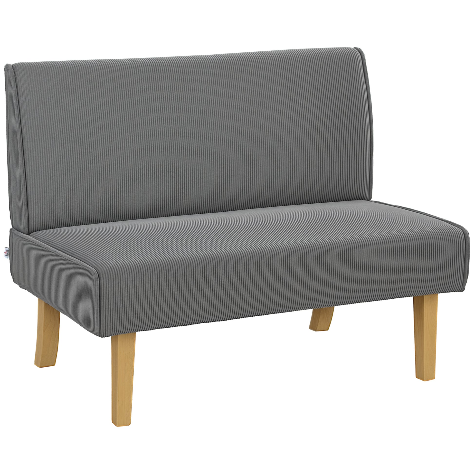 HOMCOM 2-Zitsbank, Bank met Koordlook, Houten Poten, Gewatteerde Bank, Dubbele Bank voor Slaapkamer, Woonkamer, 110 x 62 x 85 cm, Grijs