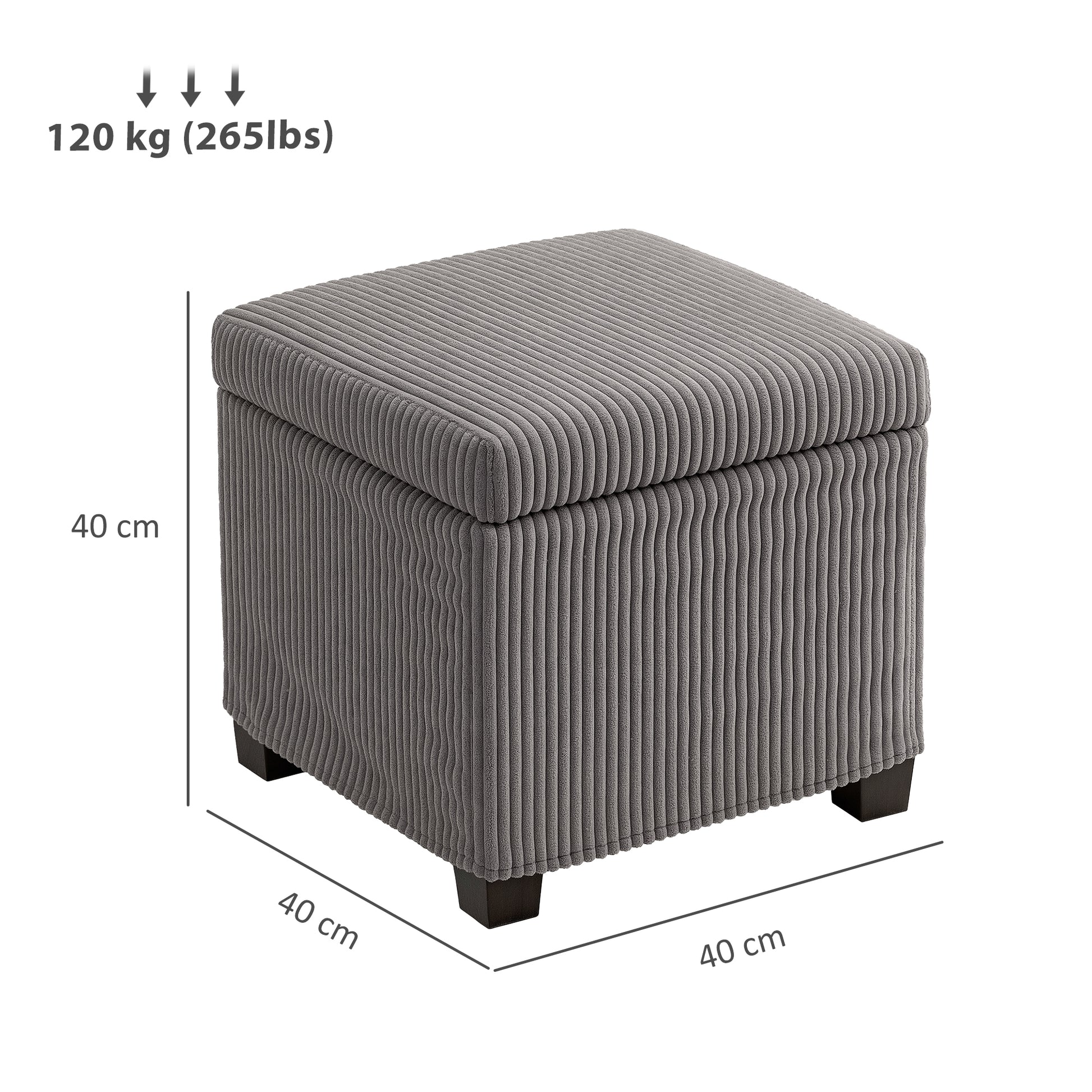 HOMCOM 30L Opbergbank Cube Voetsteun Ottomane met Verwijderbare Deksel, Bekleed met Corduroy Velours, voor Woonkamer, Slaapkamer, Entree, Houdt tot 120 Kg, 40 x 40 x 40 cm, Grijs