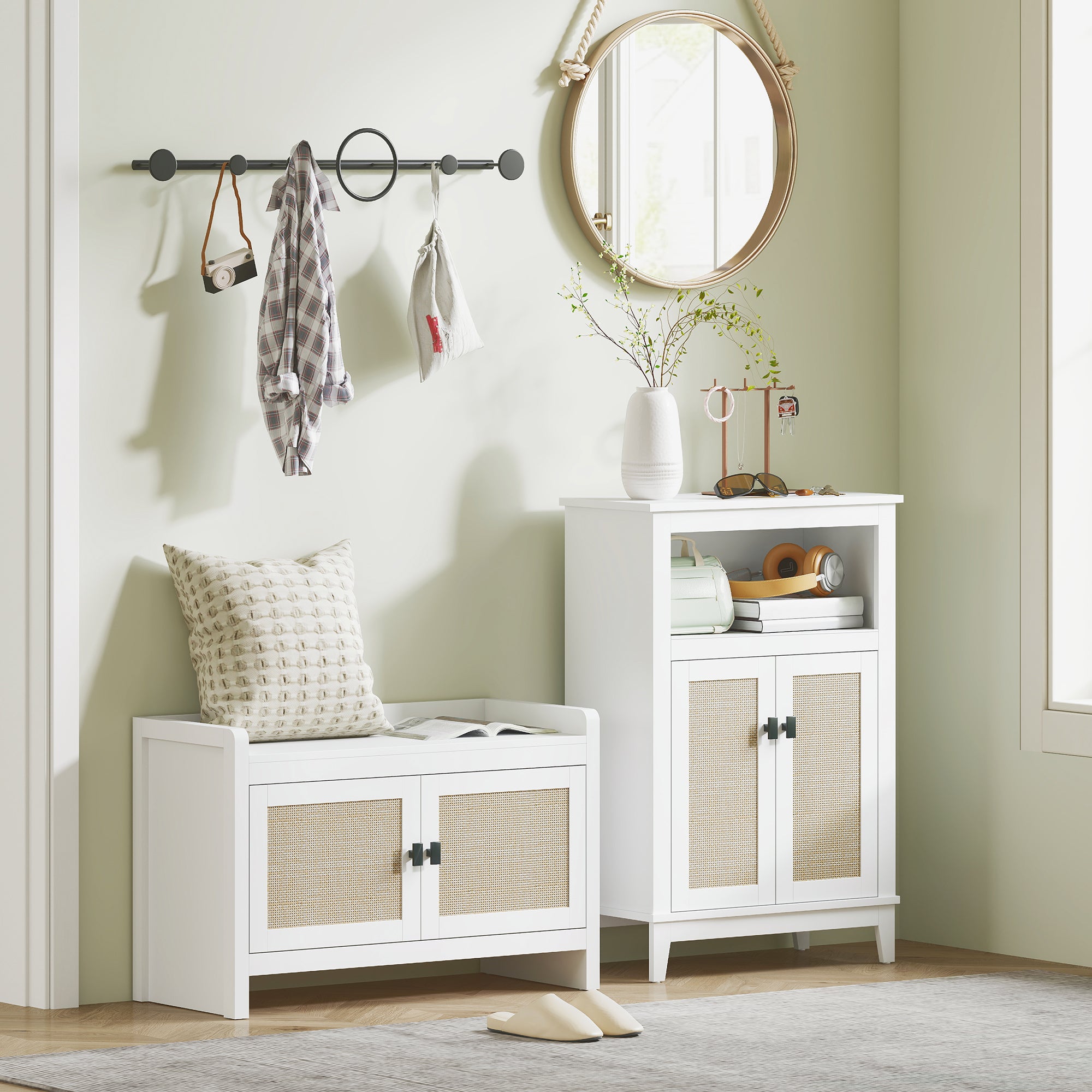 - - CANNAGE STIJL: Word verliefd op dit meubelstuk dat een modern ontwerp combineert met een boheems en natuurlijk tintje. Een elegante en functionele schoenenbank, perfect voor de slaapkamer, woonkamer, entree en meer
