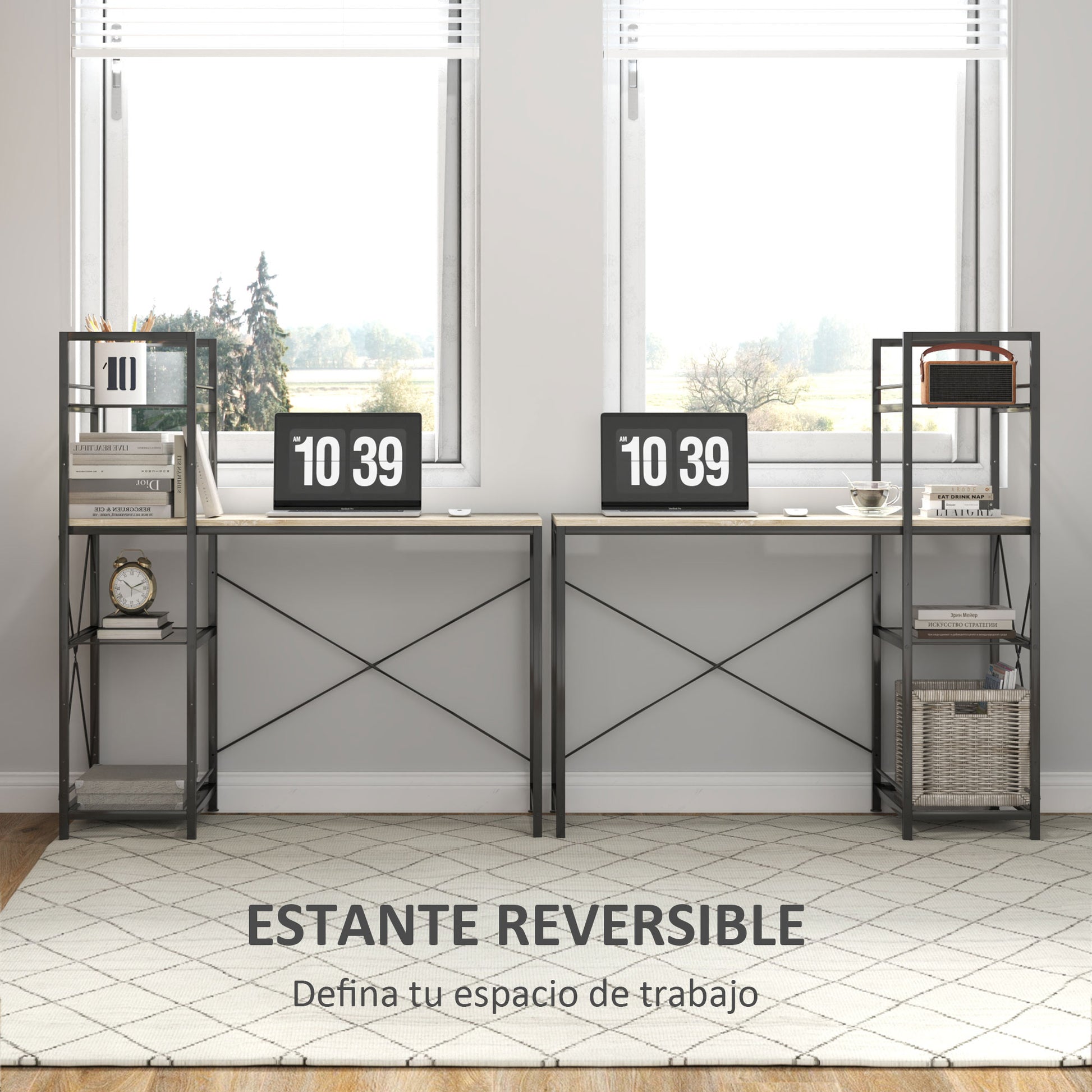 HOMCOM Industrieel Omkeerbaar Boekenkast Bureau Stalen Frame Studietafel voor Thuis Kantoor Slaapkamer 110x53x115,5 cm Eiken en Zwart