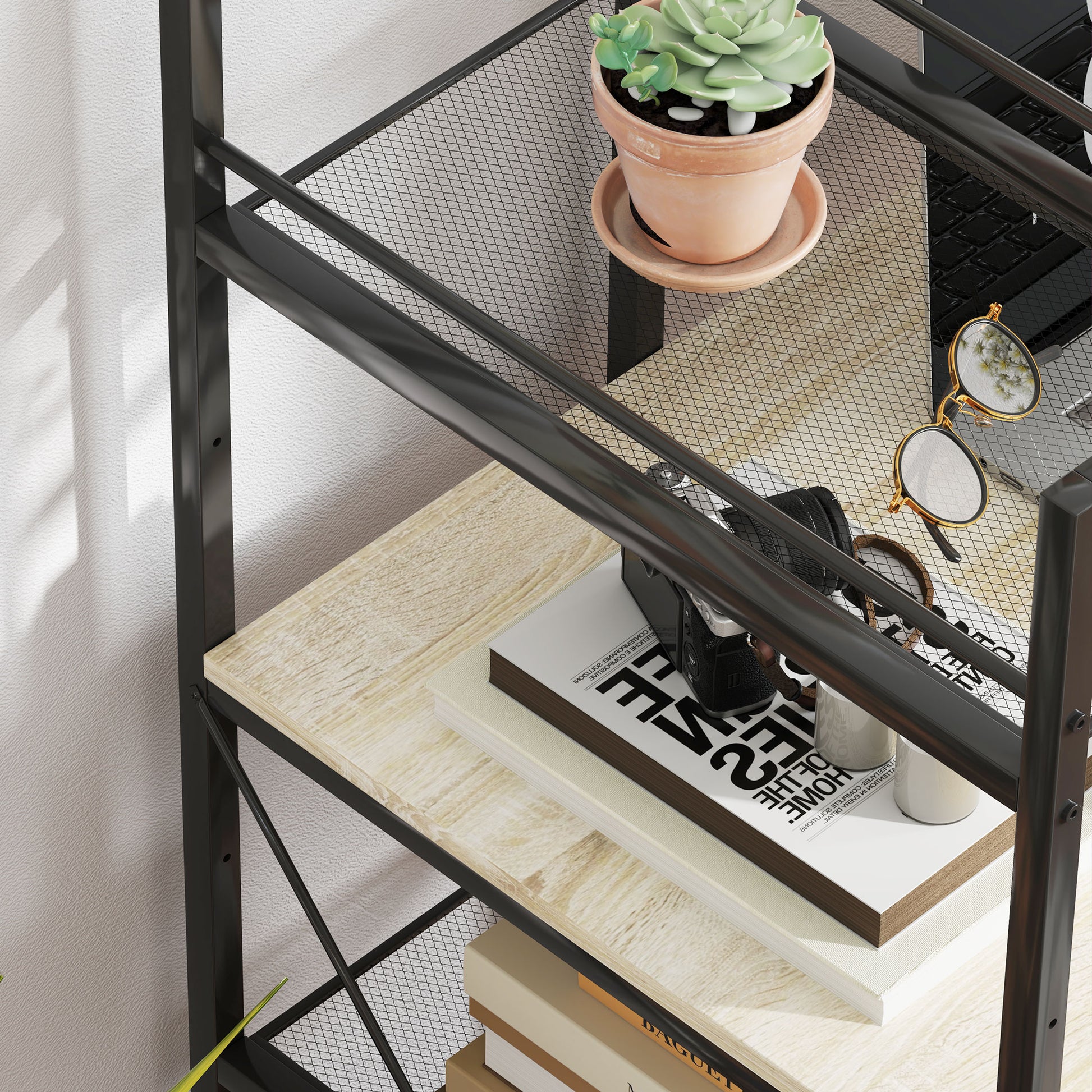 - - INDUSTRIEEL ONTWERP: Dit bureau met boekenkast combineert een zwart frame met eikenhouten panelen, waardoor een X-vormig ontwerp ontstaat dat perfect samengaat met elke decoratiestijl, met een vintage uitstraling voor je werkruimte