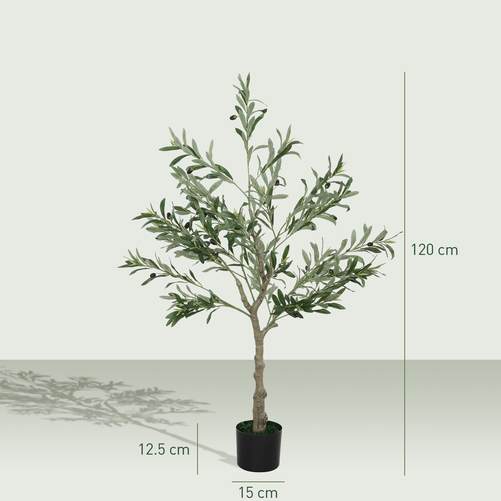 HOMCOM Kunstmatige Olijfboom 120 cm Decoratieve Kunstplanten met Zijdeachtige Bladeren en 20 Olijven Interieurdecoratie voor Thuis Kantoor Slaapkamer Woonkamer Set van 2