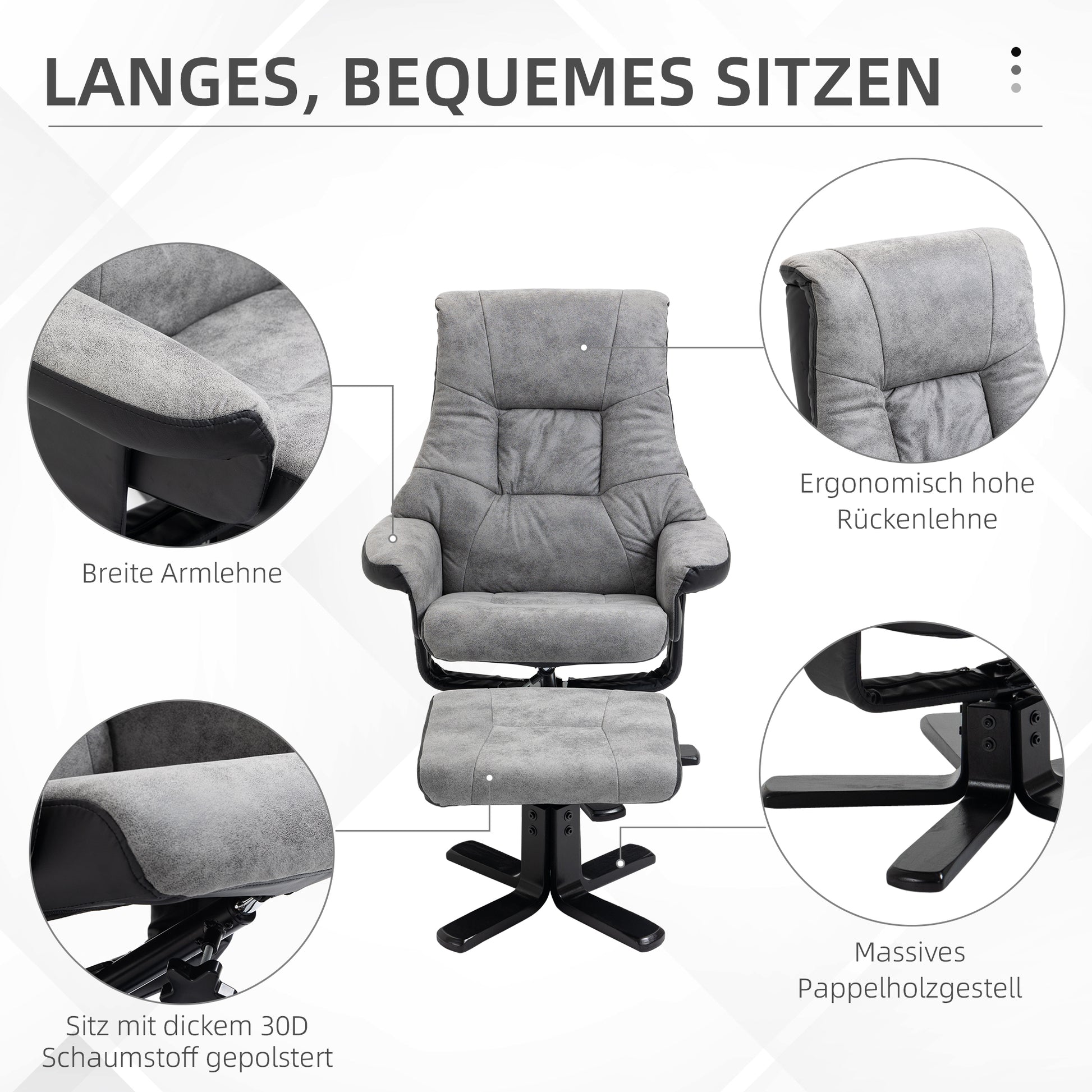 HOMCOM Relaxfauteuil met Voetensteun, Draaibare TV Fauteuil met Verstelbare Rugleuning, Beklede Stoel voor Woonkamer, Slaapkamer, Microfiber Grijs, 78 x 82,5 x 109 cm