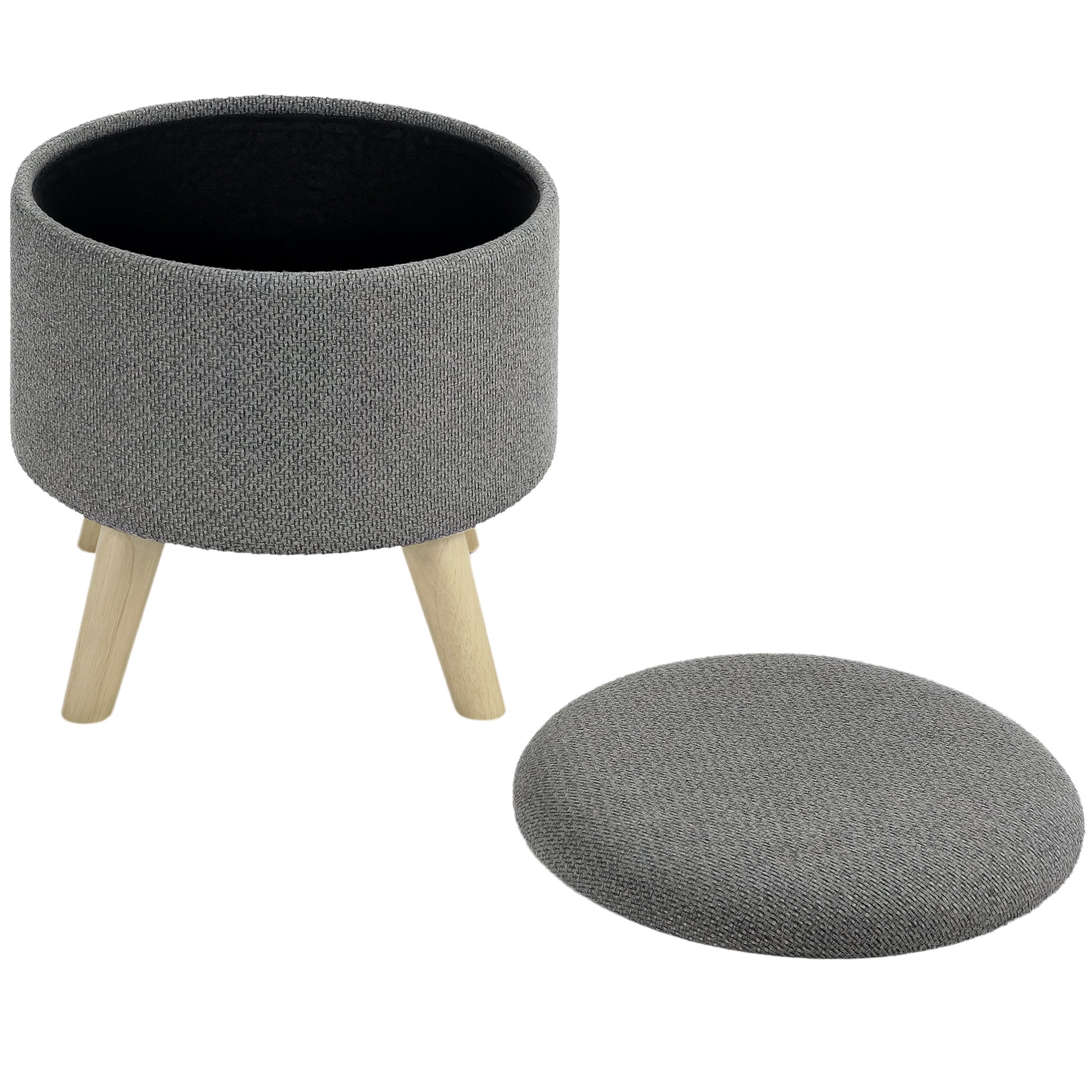HOMCOM Ronde Ottomaanse Voetsteun met Opbergkist Houten Poten Modern Ontwerp, Grijs