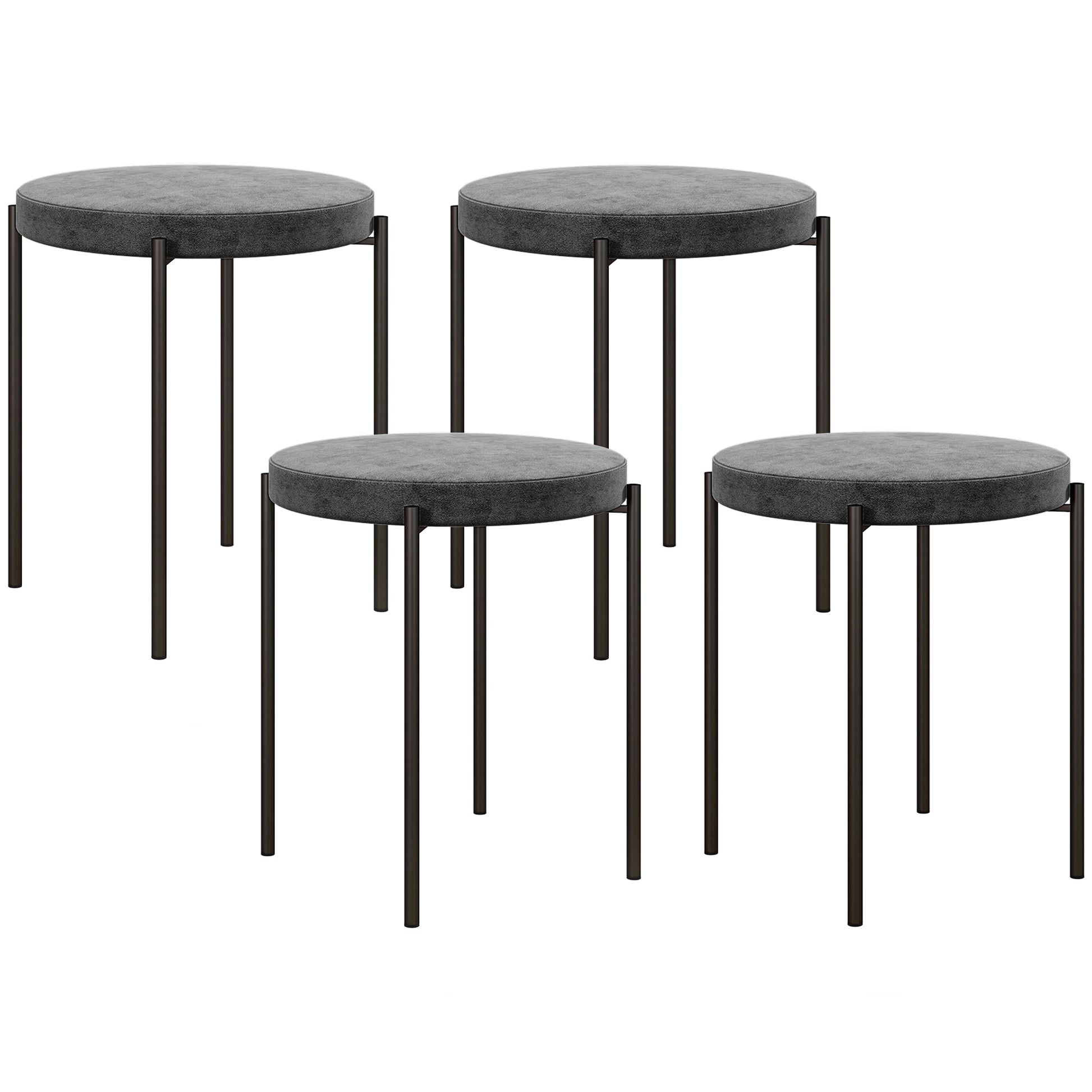 HOMCOM Set van 4 Stapelbare Eetkrukken Eetstoelen Keukenstoelen met Gevoerd Zitvlak, Fluwelen Uiterlijk, Fluwelen Kruk voor Keuken Eetkamer Metaal Donkergrijs 41,5 x 41,5 x 46 cm