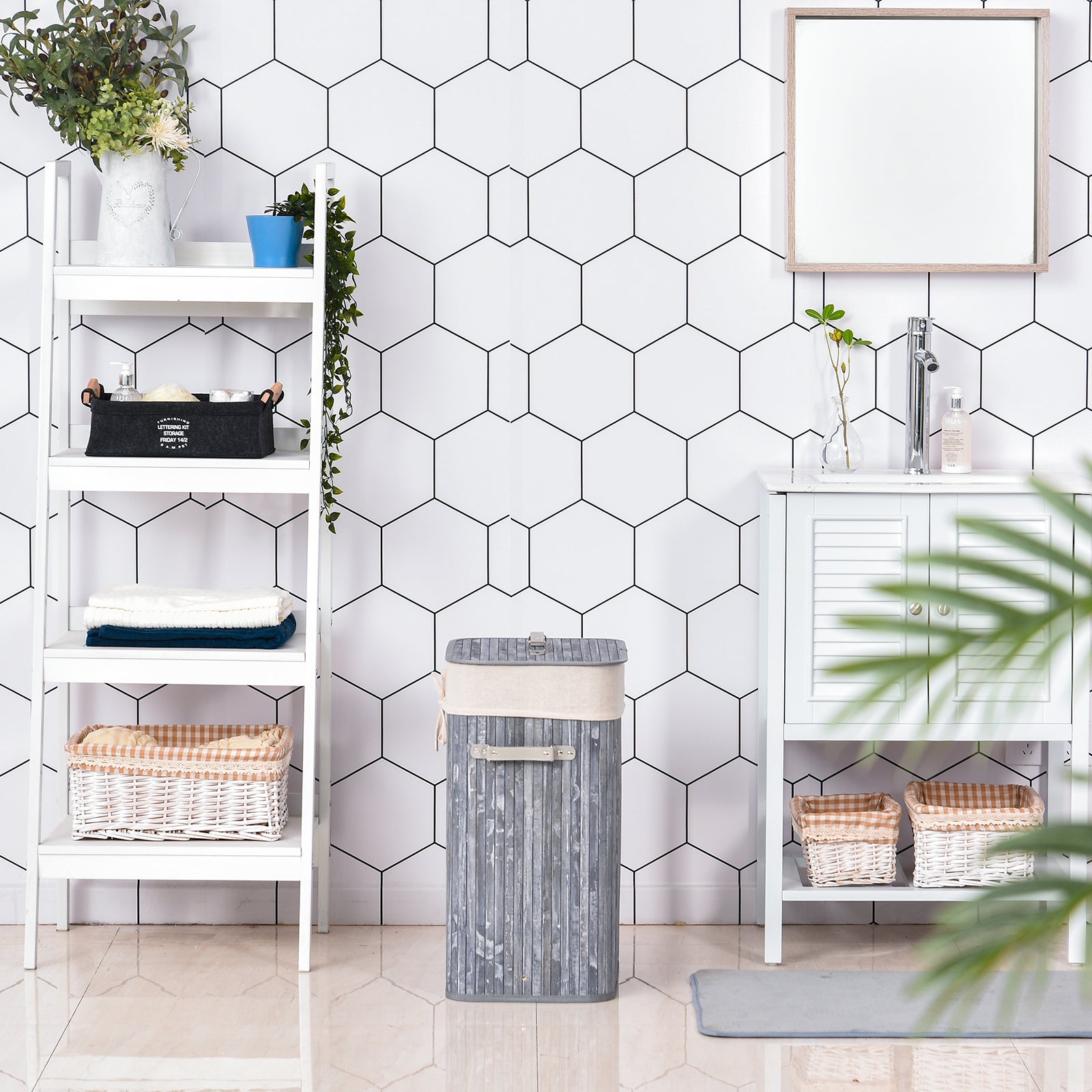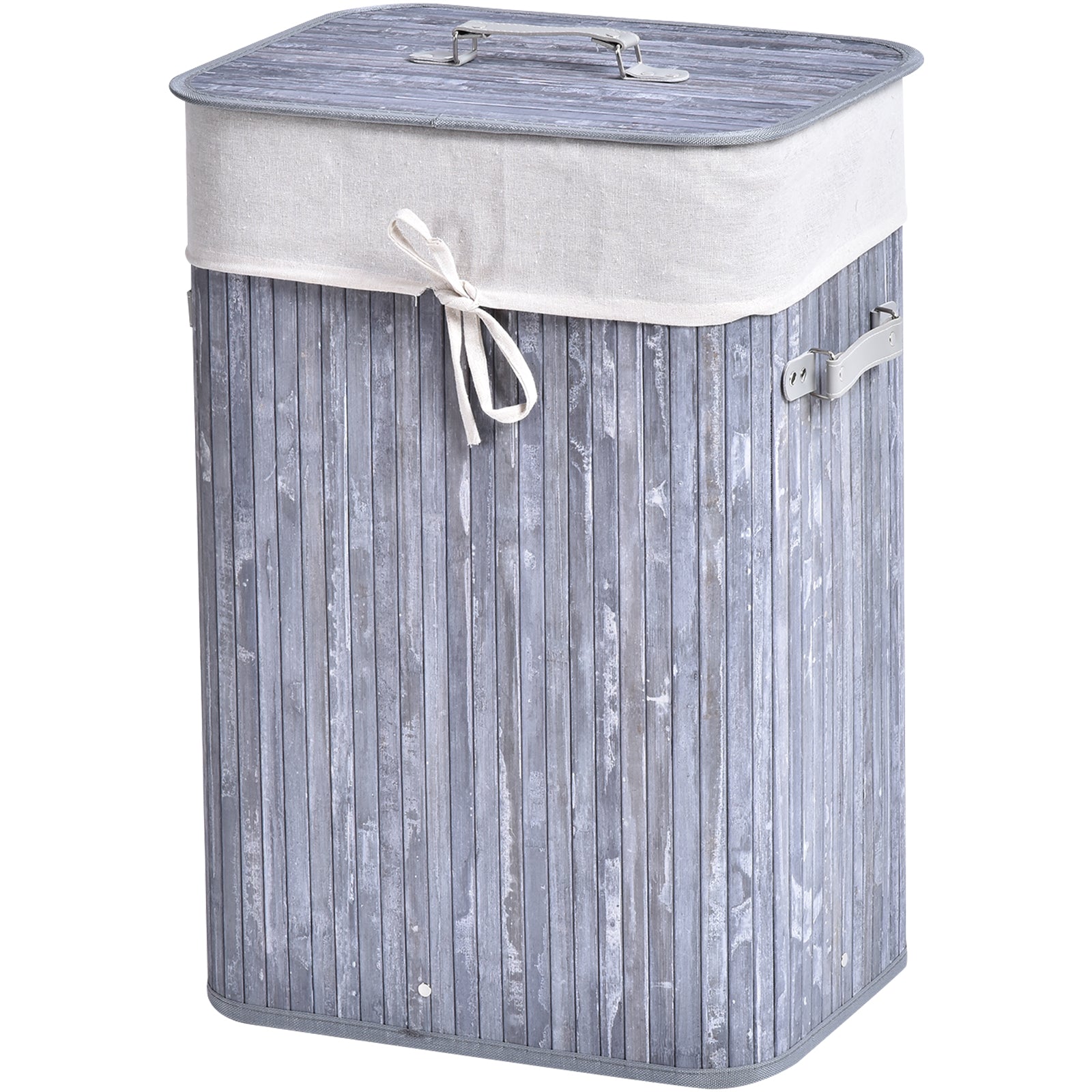 HOMCOM Smalle Wasmand met Deksel 72L Wasverzamelaar met Handgreep, Verwijderbare Waszak, Wasbox voor Wasruimte Slaapkamer Badkamer, Grijs