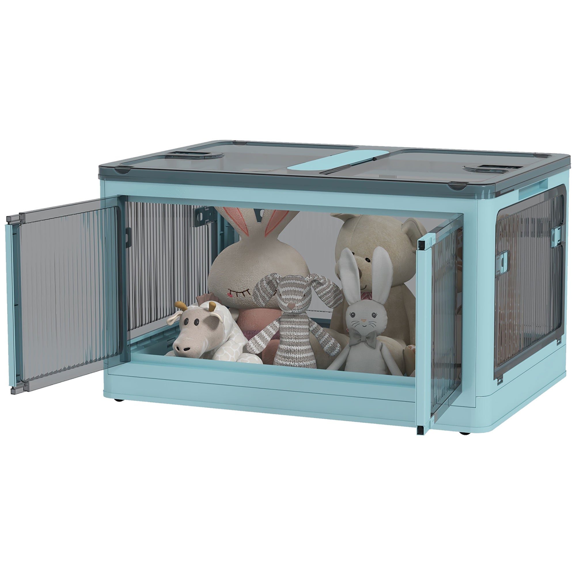 HOMCOM Stapelbaar Opslagdoos met Deksel 69L Opvouwbare Organizer Box met Wielen Plastic Container met 5-Zijdige Toegang 60x42x34 cm Blauw