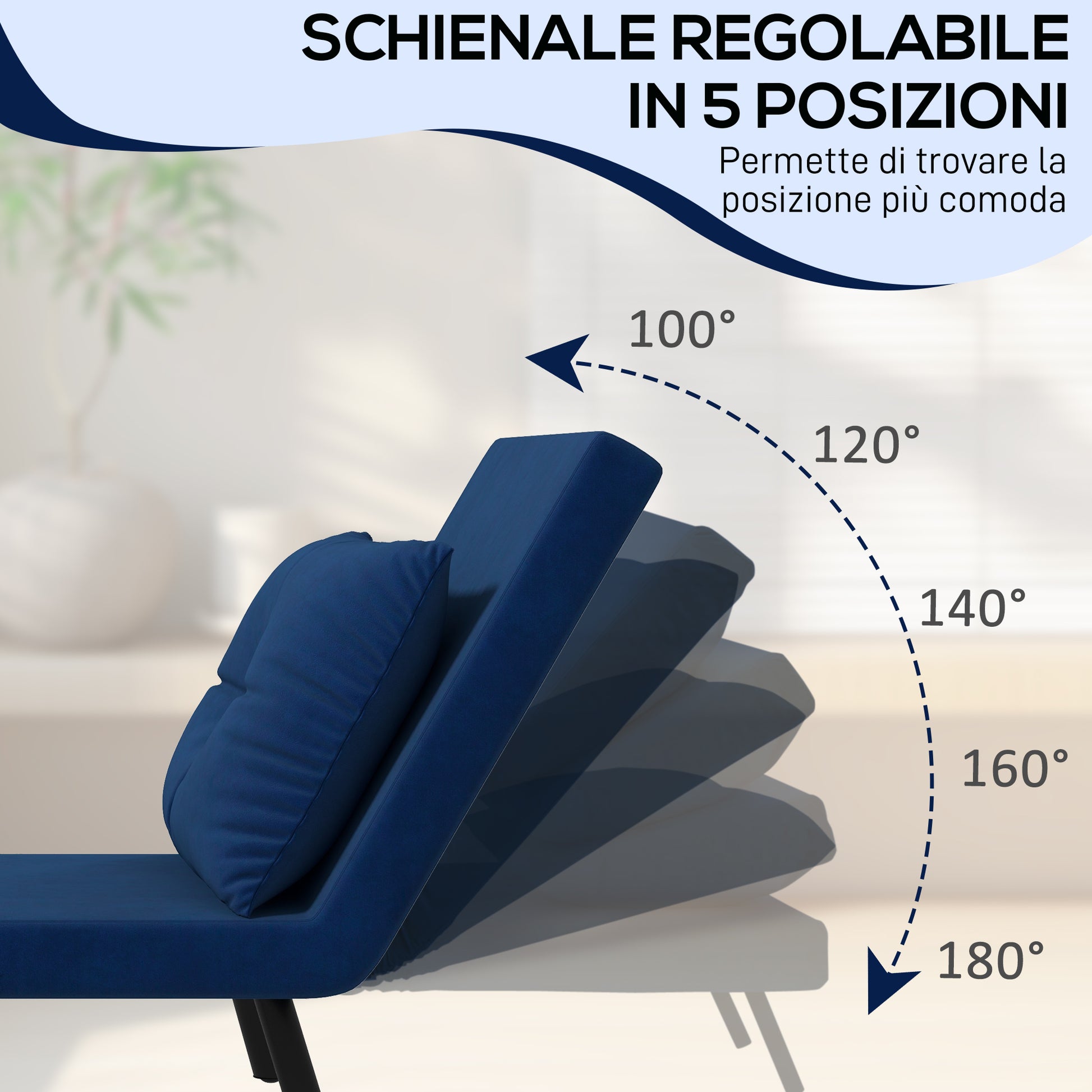 HOMCOM Verstelbare Rugleuning Slaapbank in 5 Niveaus, Vouwbare Slaapbank met Kussens voor de Woonkamer, Bekleed Stof, Staal en Hout, 63x73x81 cm, Blauw