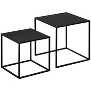 HOMCOM vierkante salontafel 2-delige set, bijzettafel in modern design, stalen frame, stapelbaar, salontafel bijzettafel voor woonkamer slaapkamer, zwart