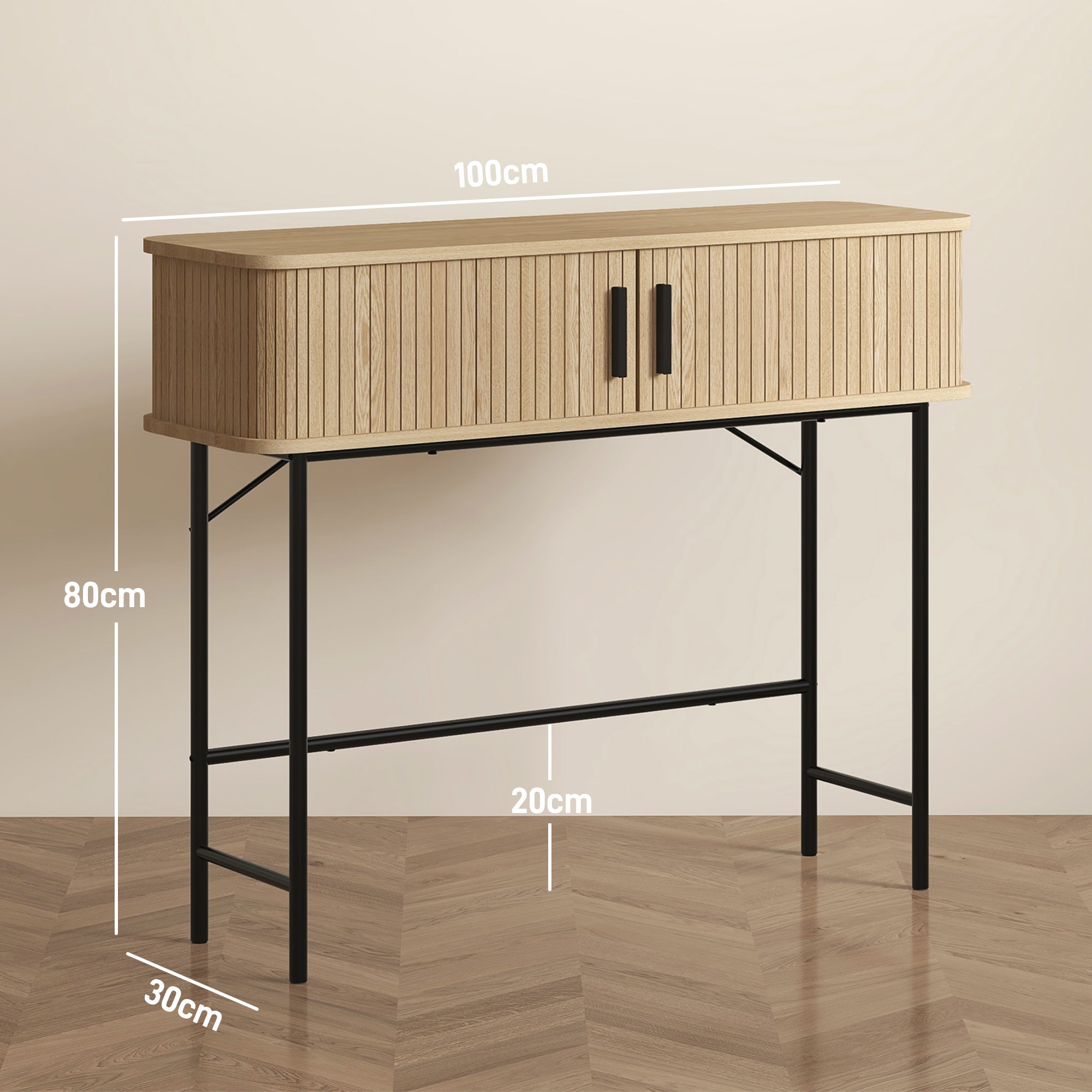 HOMCOM Vintage Console Tafel Dressoir met 2 Glijdende Shutterdeuren en Compartimenten voor Entree Hal 100x30x80 cm Eik