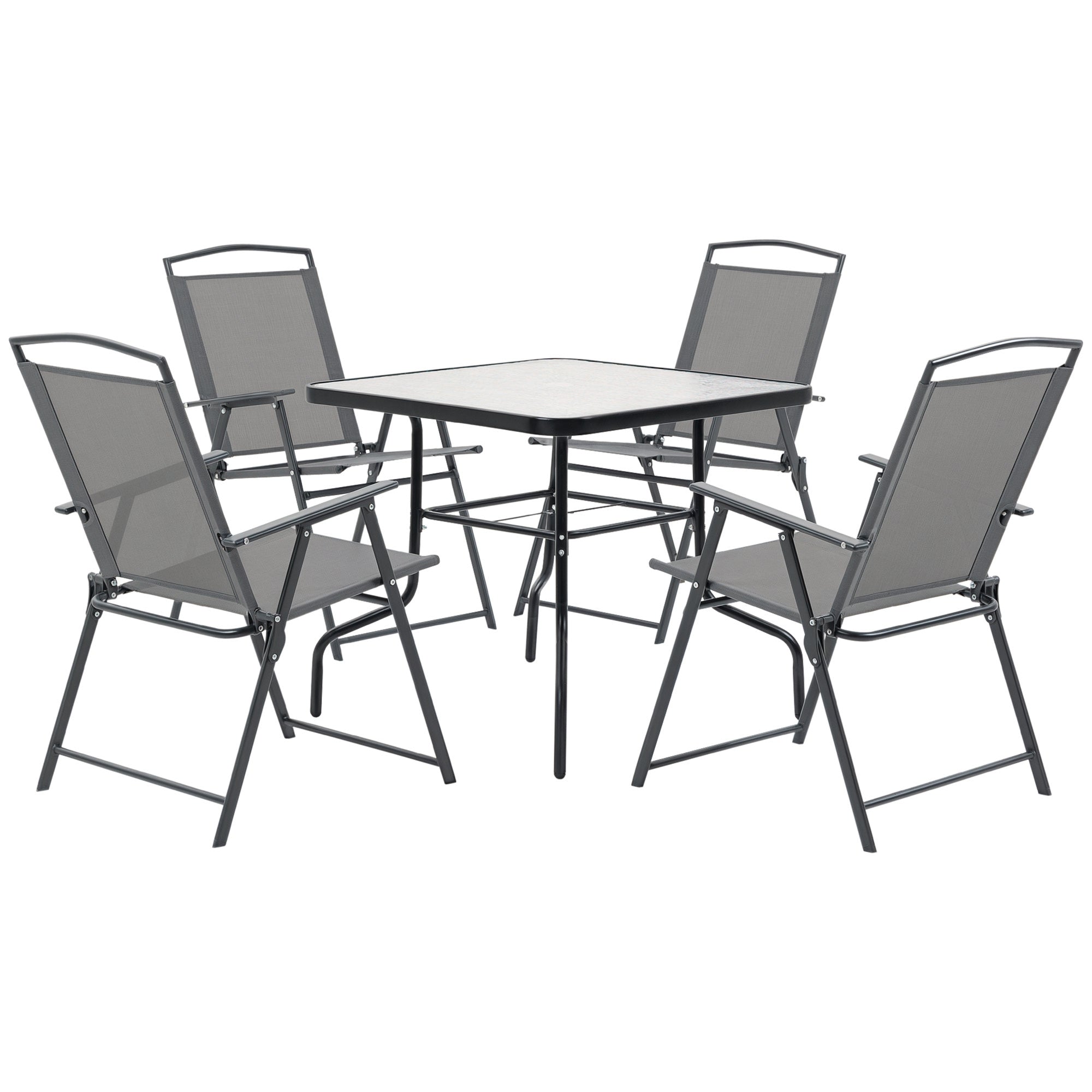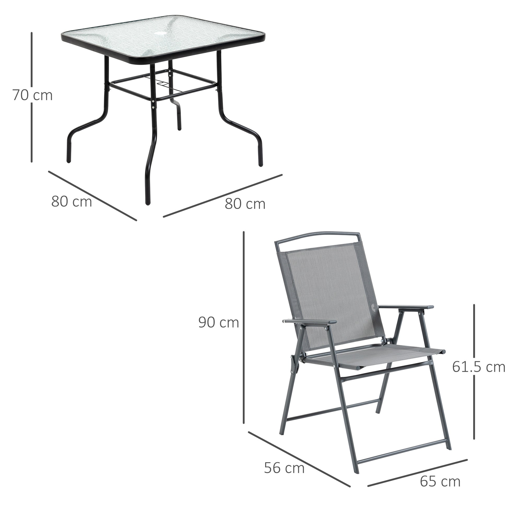 Outsunny 5-delige Metalen Tuinmeubelset, Tafel met Parasoldoorvoer en Opvouwbare Stoelen, Zwart
