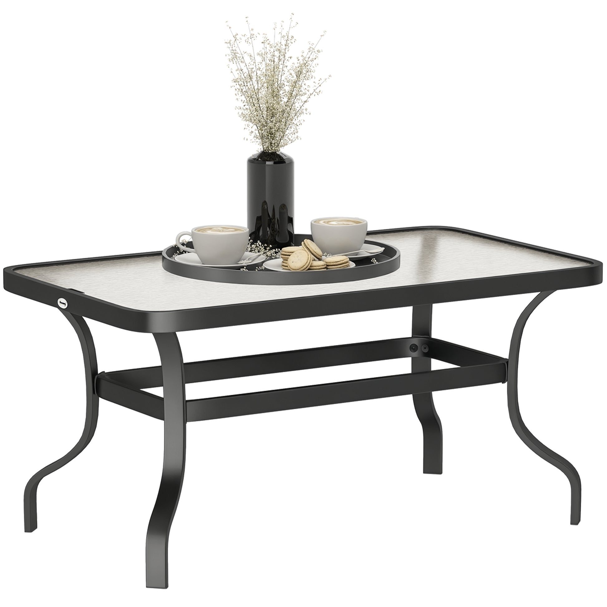 Outsunny Bijzettafel Tempered Glass Koffietafel met Golfdesign, Afgeronde Hoeken Balkon Tafel Tuin Tafel Sofa Tafel Thee Tafel Tuinmeubilair voor Woonkamer Tuin Terras Balkon, 95x55 cm Zwart
