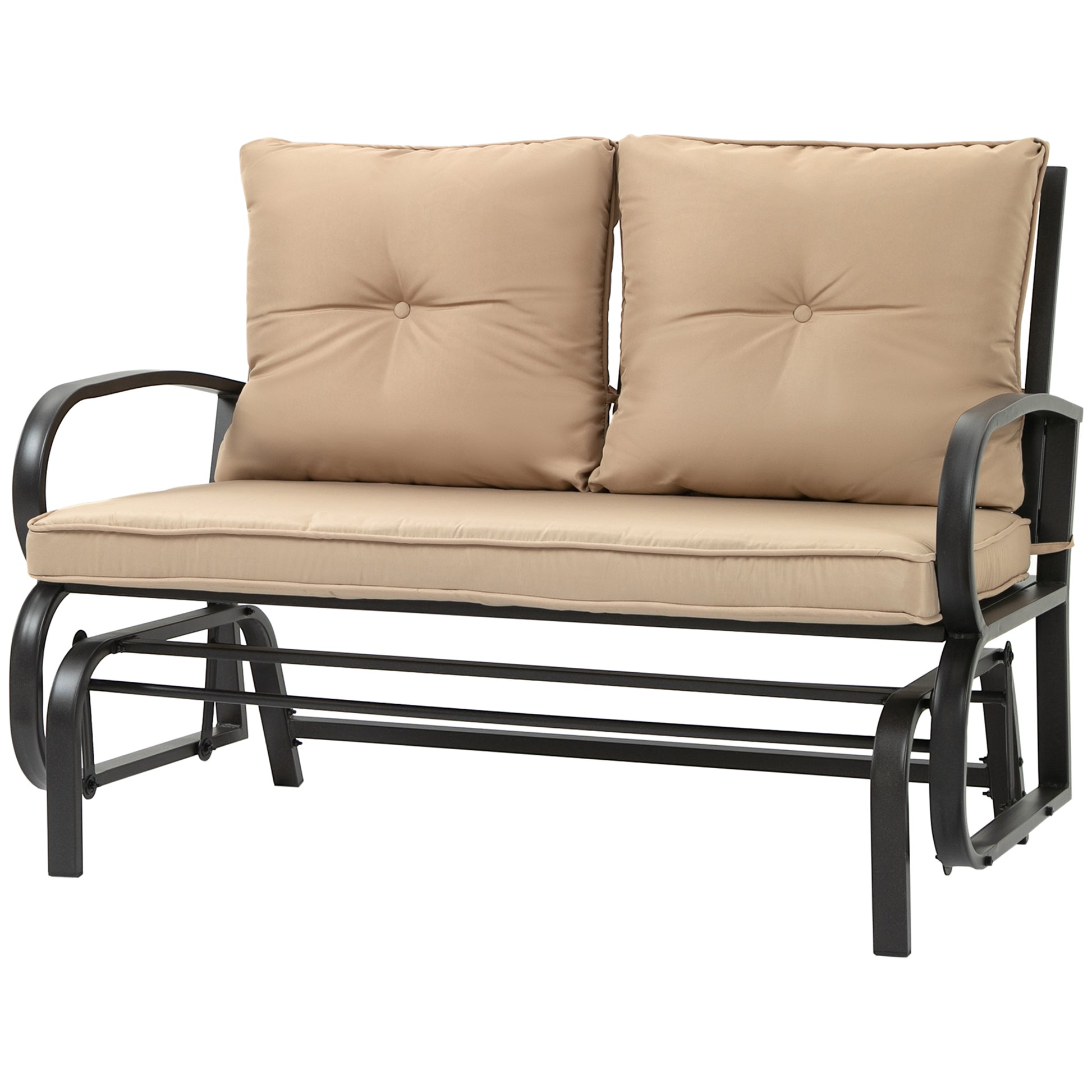 Outsunny Dubbele Tuin Schommelbank voor 2 Personen met Gevoerde Zit- en Rugkussens, 122x70x87cm, Khaki