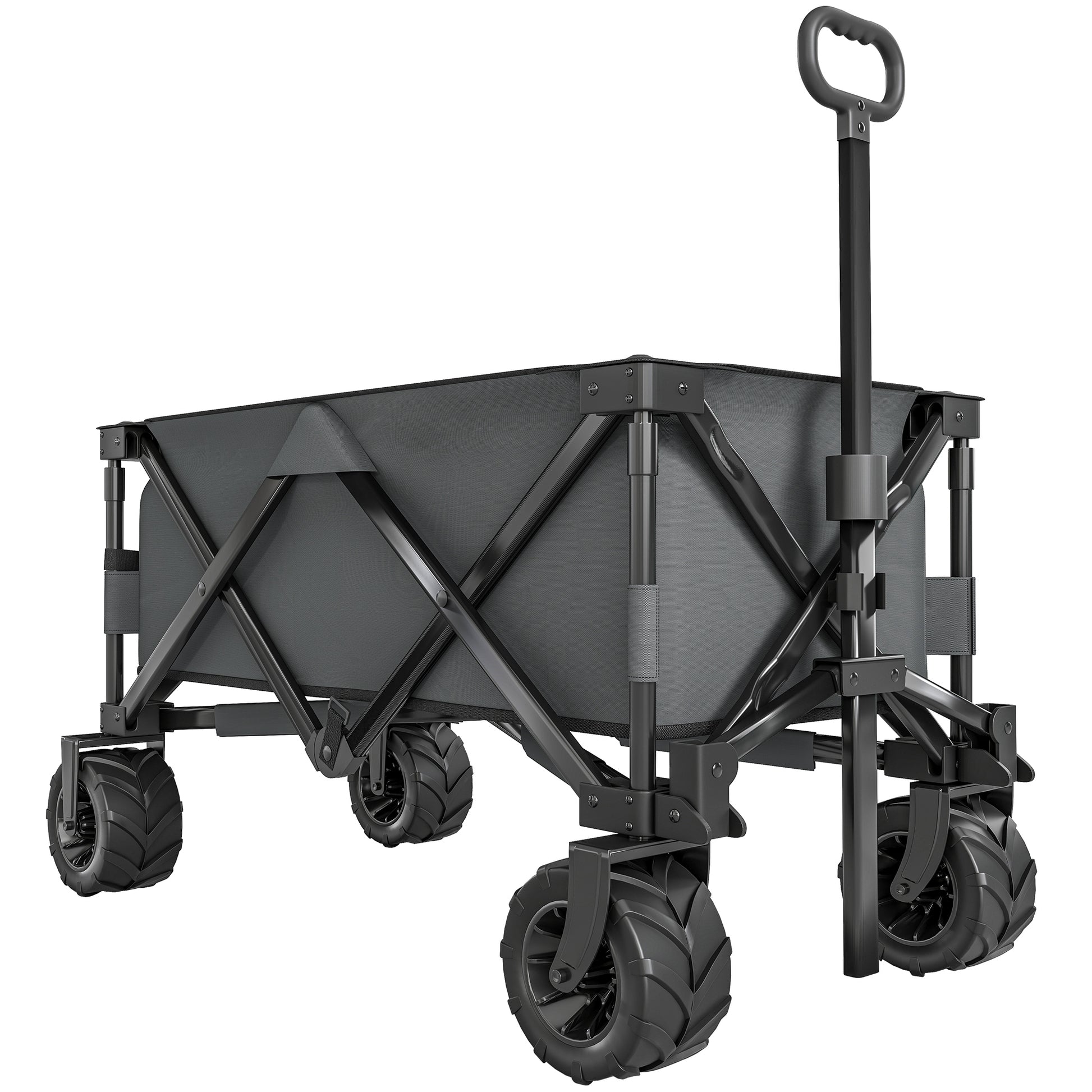 Outsunny Opvouwbare Handkar 360° Tuin Trolley Vervoertrolley met Uitschuifbare Handgreep Verstelbare Handgreephoogte Strandtrolley tot 70 kg Draagvermogen Metaal Oxford Donkergrijs 108 x 55 x 59-89 cm