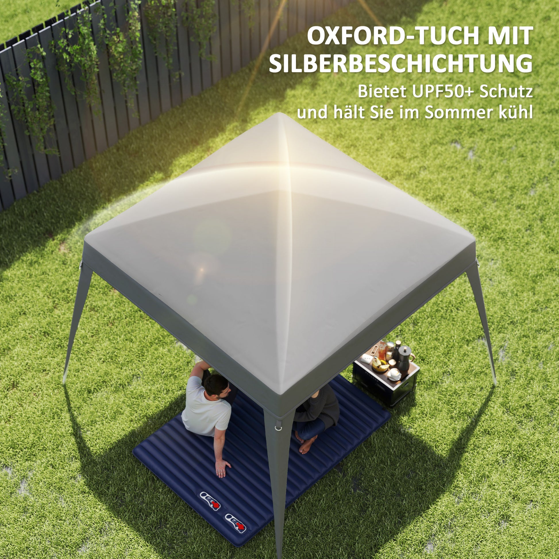 - - Eenvoudige Montage: Gazebodak bevestiging stevig met klittenbandstraps op het frame, terwijl haken met elastische banden zijn bevestigd aan de gazebopoten. Twee personen kunnen dit in slechts 5 minuten monteren