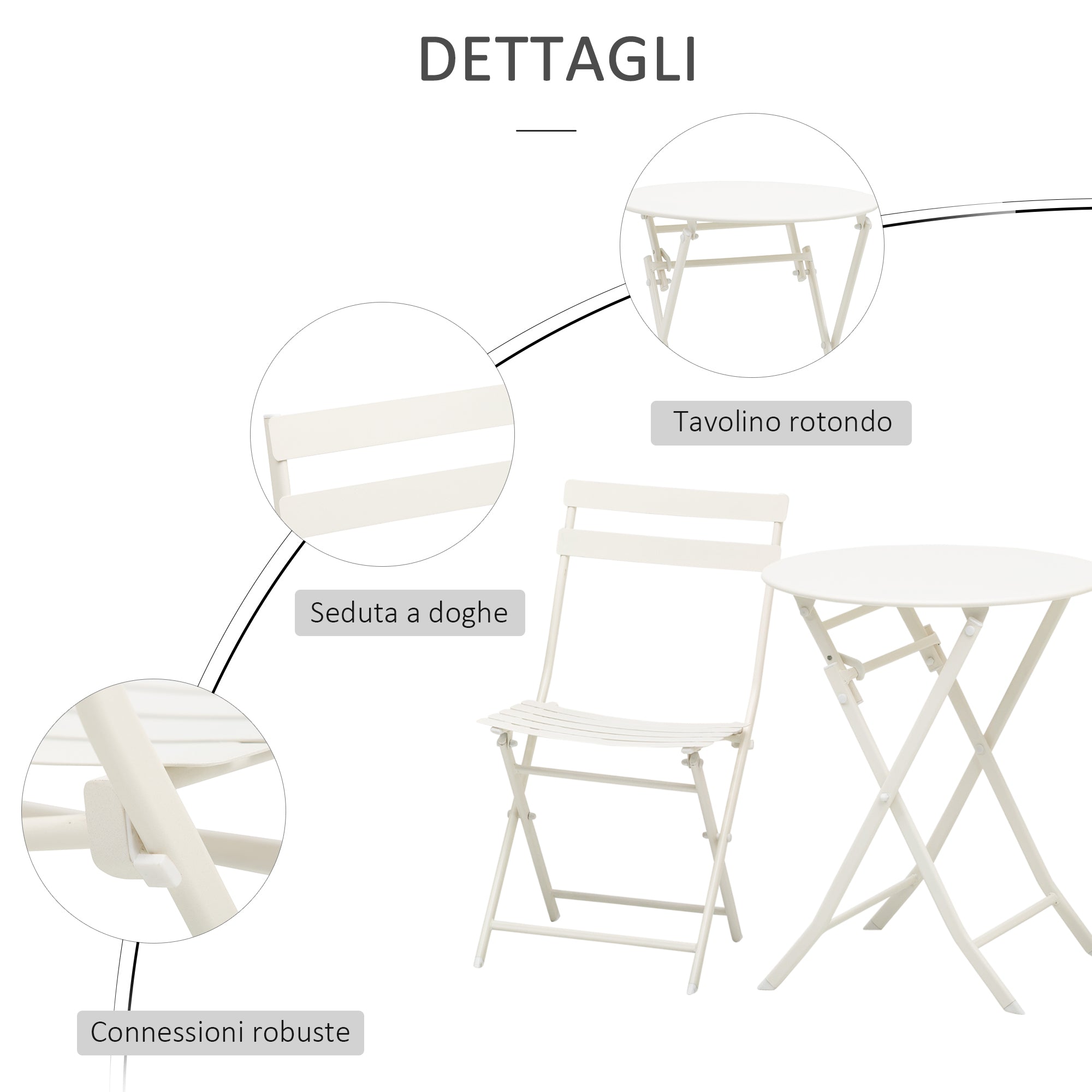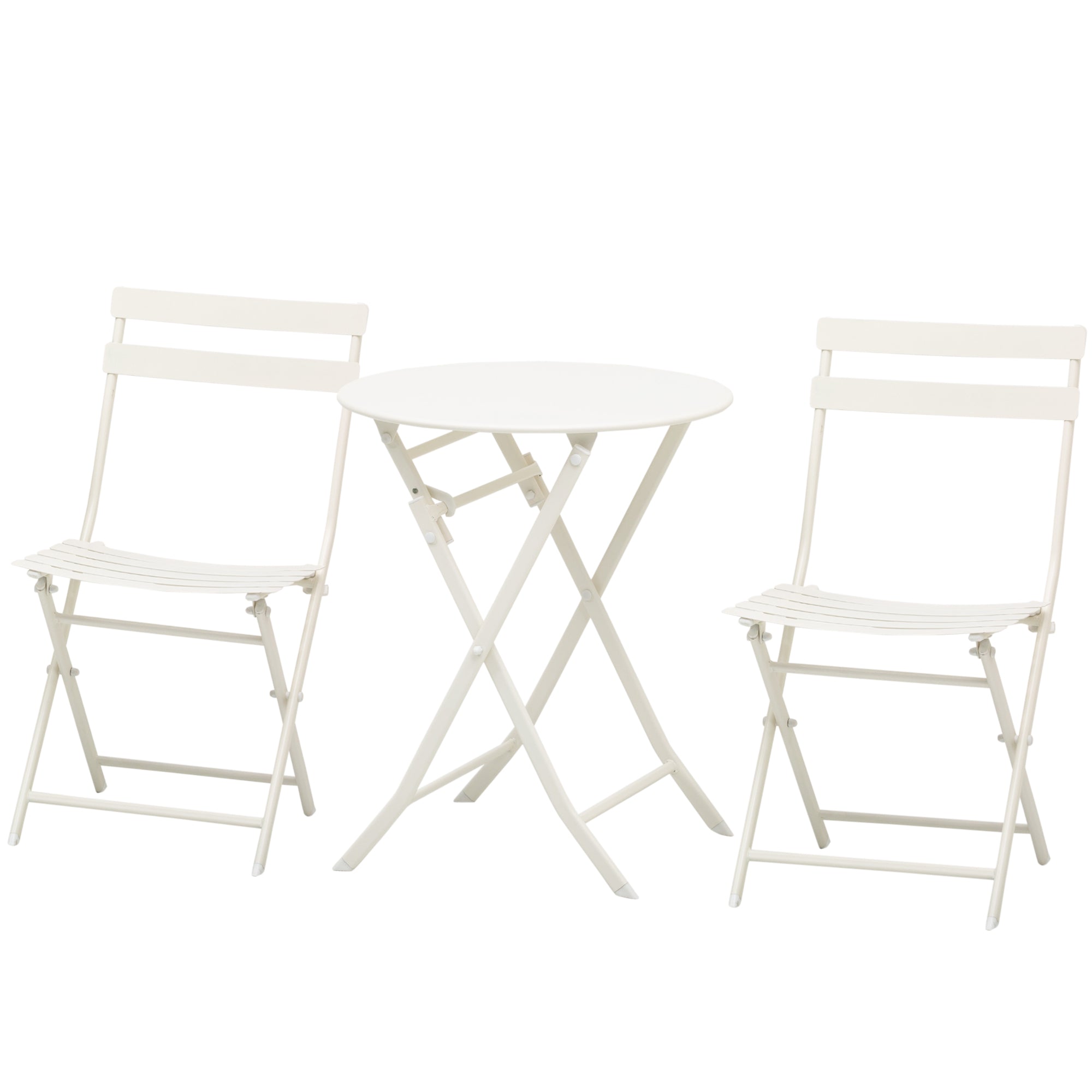 Outsunny Witte Stalen Opvouwbare Tuinset met Stoelen, 3-delige Set voor Balkon, Terras, Buitengebied