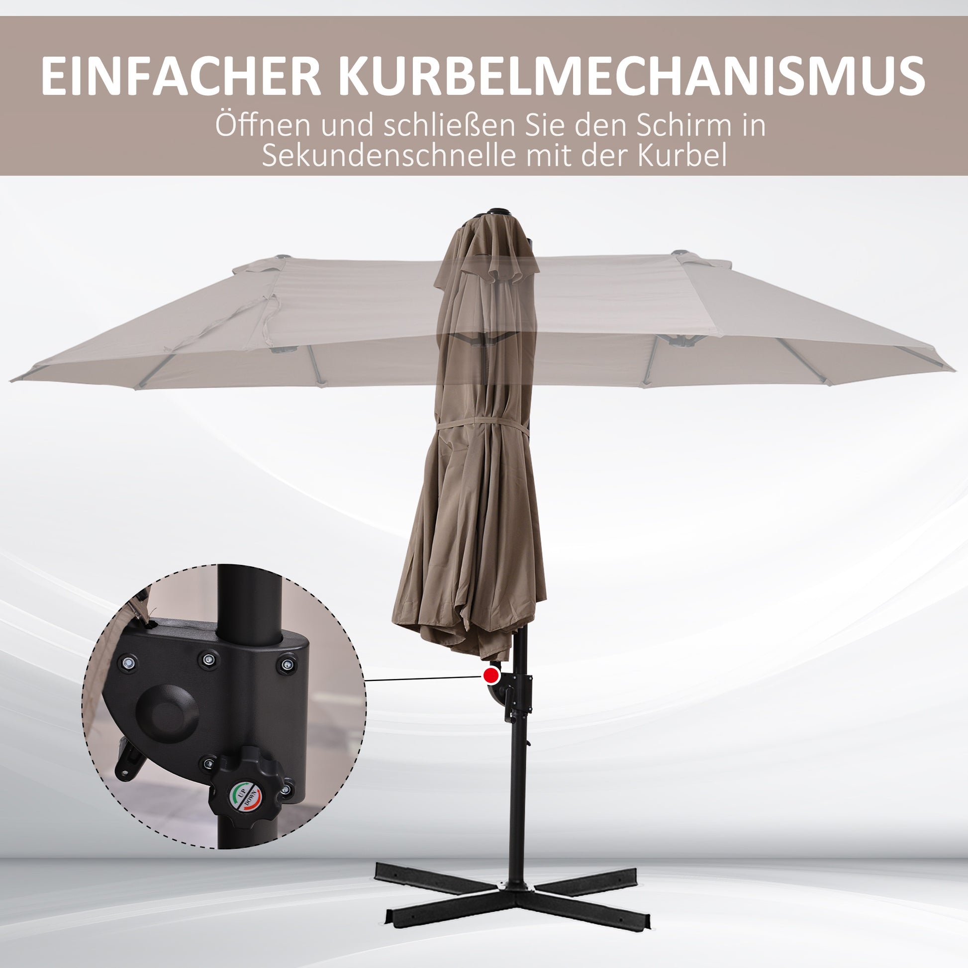 Outsunny XXL Parasolver Oval 445x260cm Met Kantelstandaard - Handmatige Bediening Tuinparasols Bruin