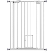 PawHut 104H cm Huisdier Veiligheidshekje met Automatisch Sluitende Deur Dubbel Vergrendelingssysteem zonder Boren van 74 tot 80 cm Wit Staal