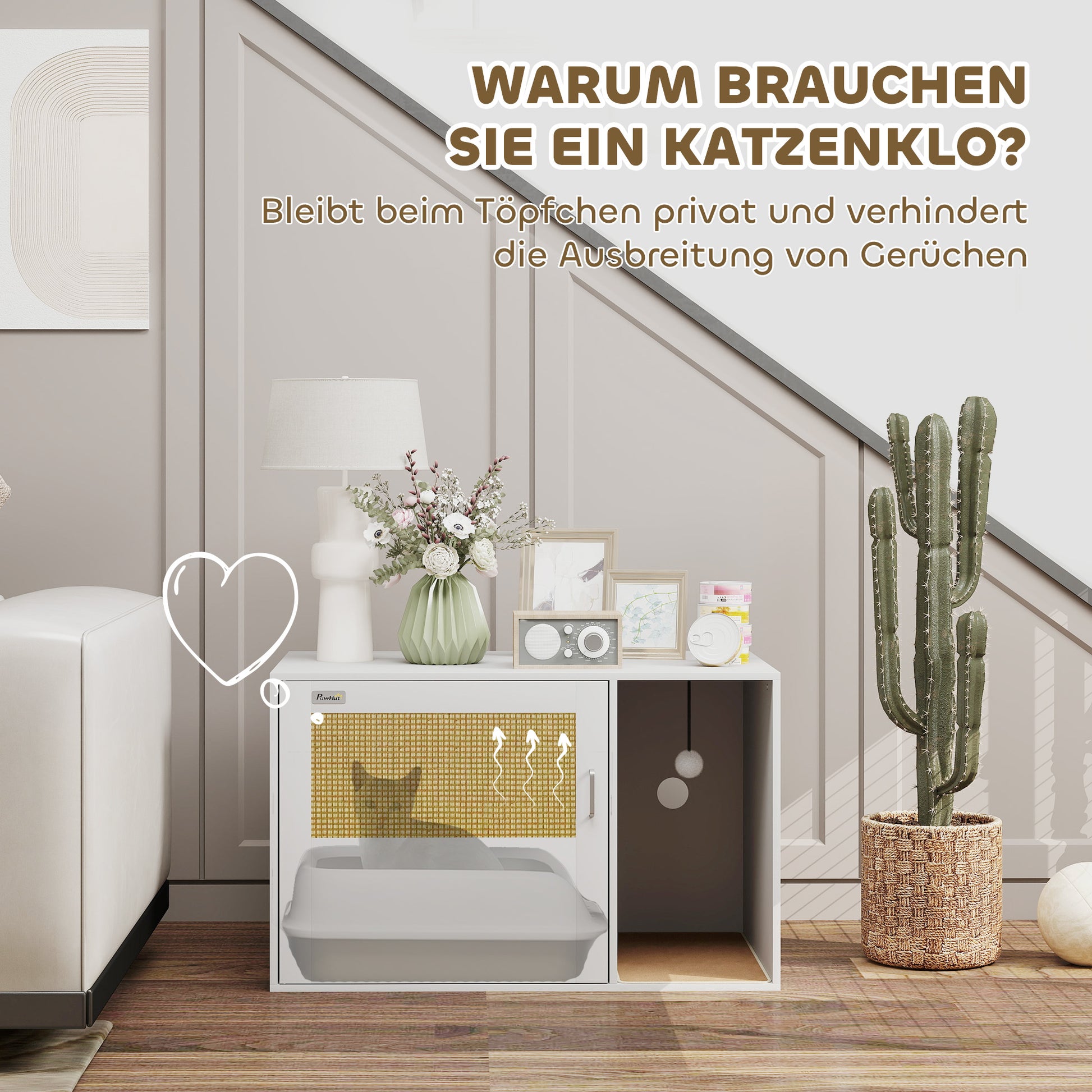 PawHut Kattenbak Kast met Gat, Kattenkast met Deur, Ingang, Krab Pad, Kattenbak kast voor Katten onder de 6 kg, 80 x 50 x 50 cm, Binnenhuis, Wit