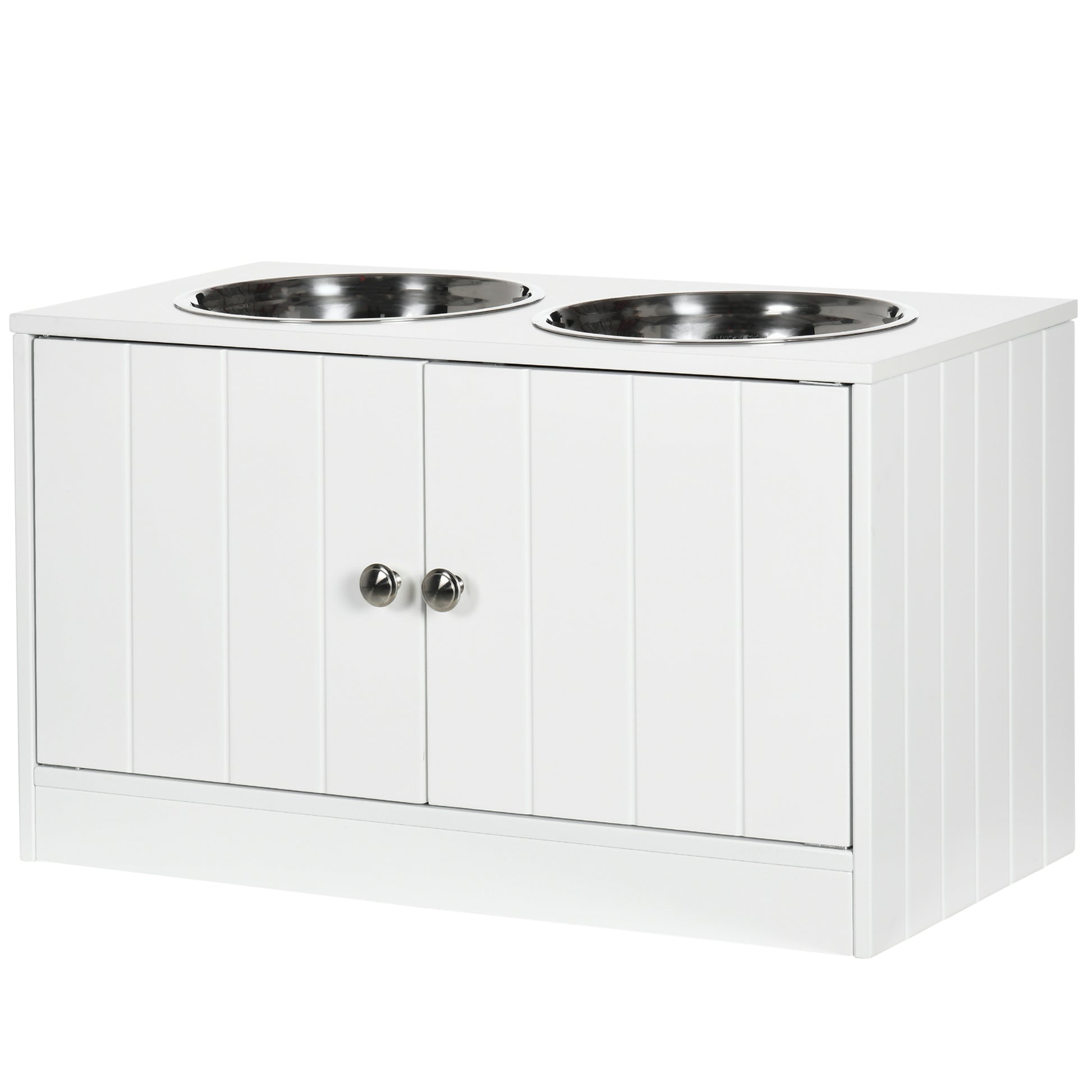 PawHut Verhoogde Hondenvoederstation met Opbergreservwatertank 2 x 2000ml RVS Schalen Voederbak Hondenbakken Voederstation voor Grote Honden Katten Wit