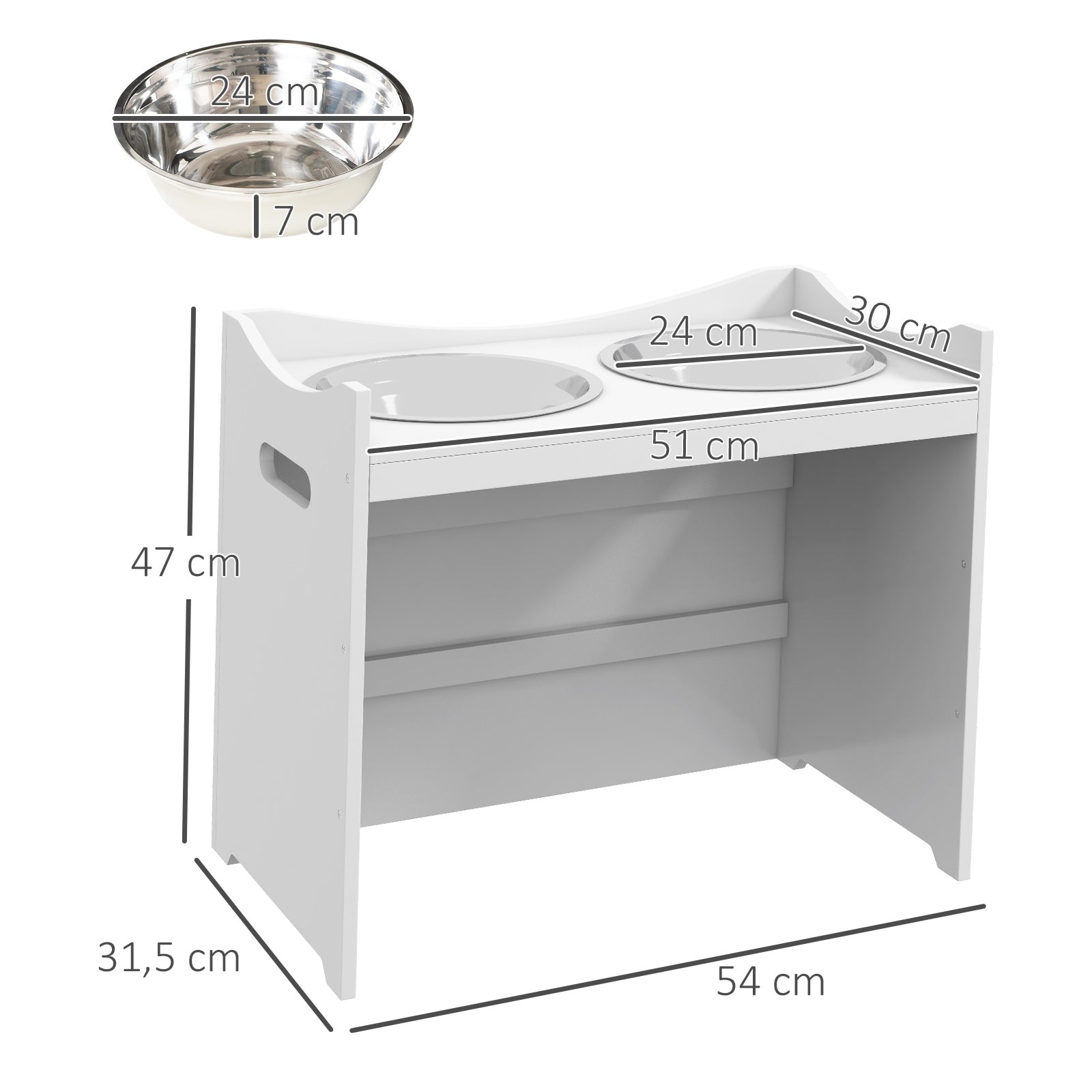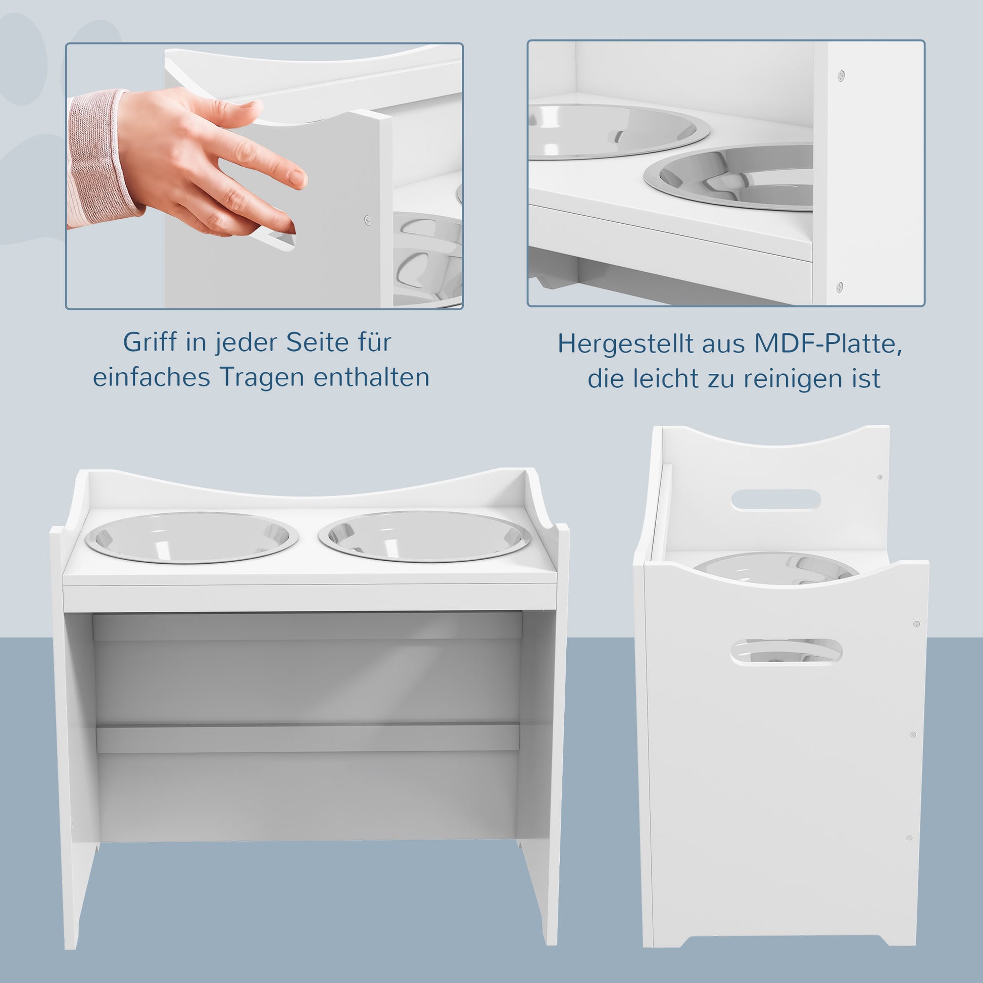 PawHut Verstelbare Voerbak, Verheven Voederstation met 2L RVS Kom, met Voedingsstandaard, Handvat, Hondentafel voor alle Hondenrassen, Wit