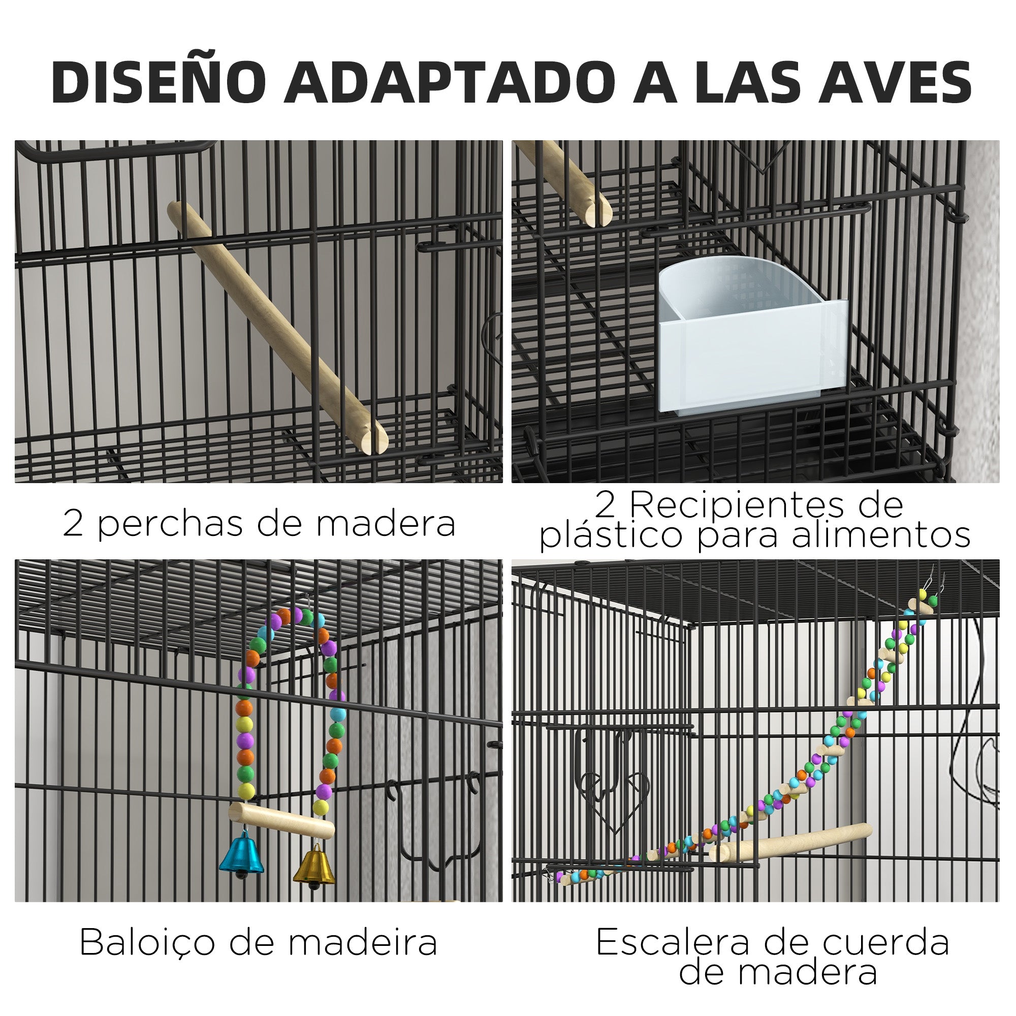 PawHut Vogelkooi 77x46x164 cm Metaalkooi voor Vogels met Verwijderbare Lade, Houten Perches en Voederbakken voor Papegaaien en Kanaries