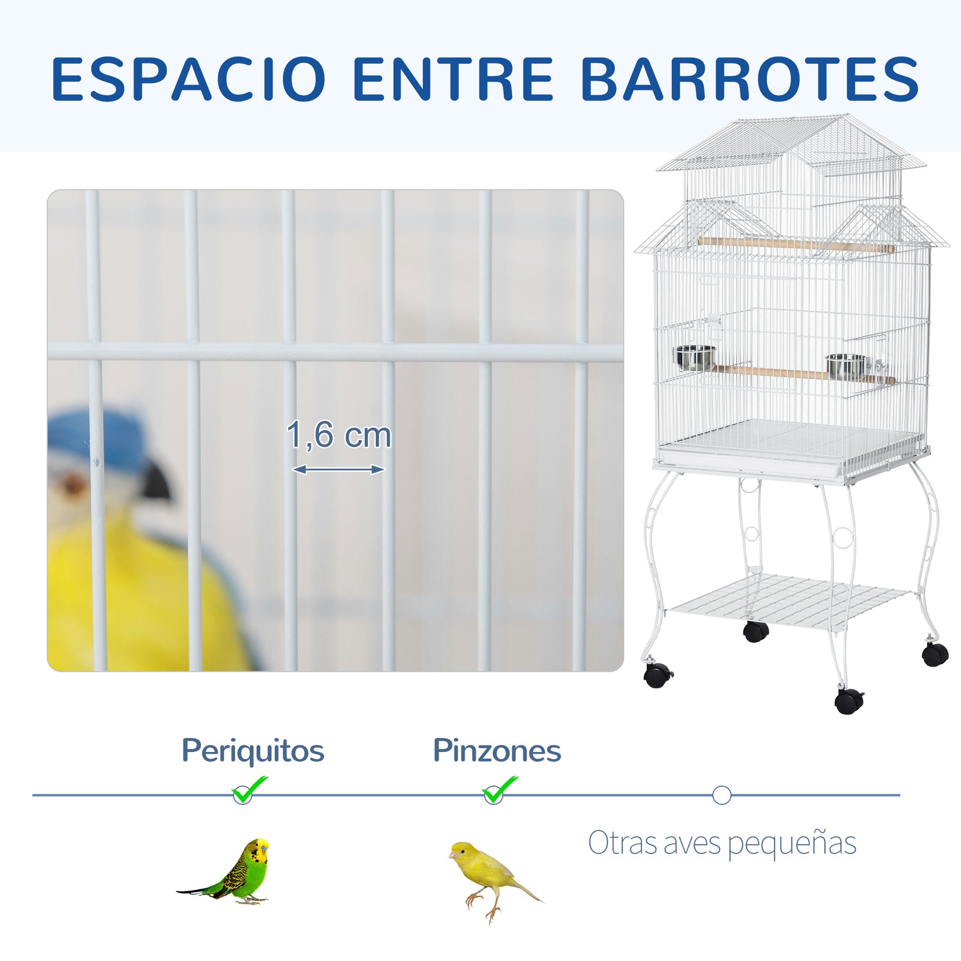 - - STAND MET WIELEN: Deze vogelkooi voor parkieten is voorzien van een statief met wielen voor gemakkelijke mobiliteit in huis, zonder dat een andere ondergrond nodig is. Bovendien heeft het een plank om voedsel en andere huisdieraccessoires op te slaan