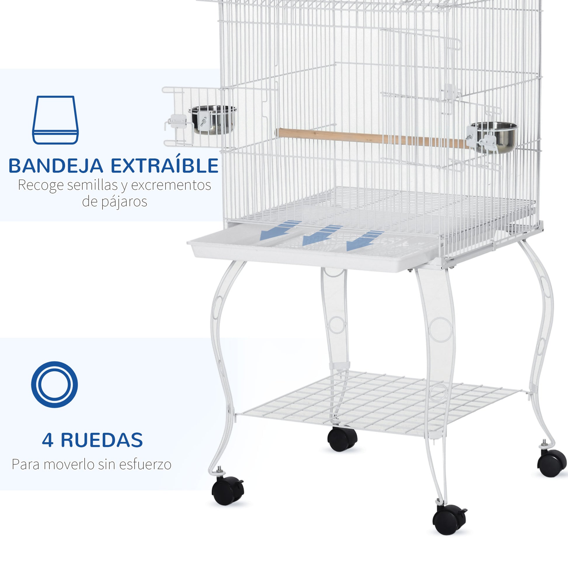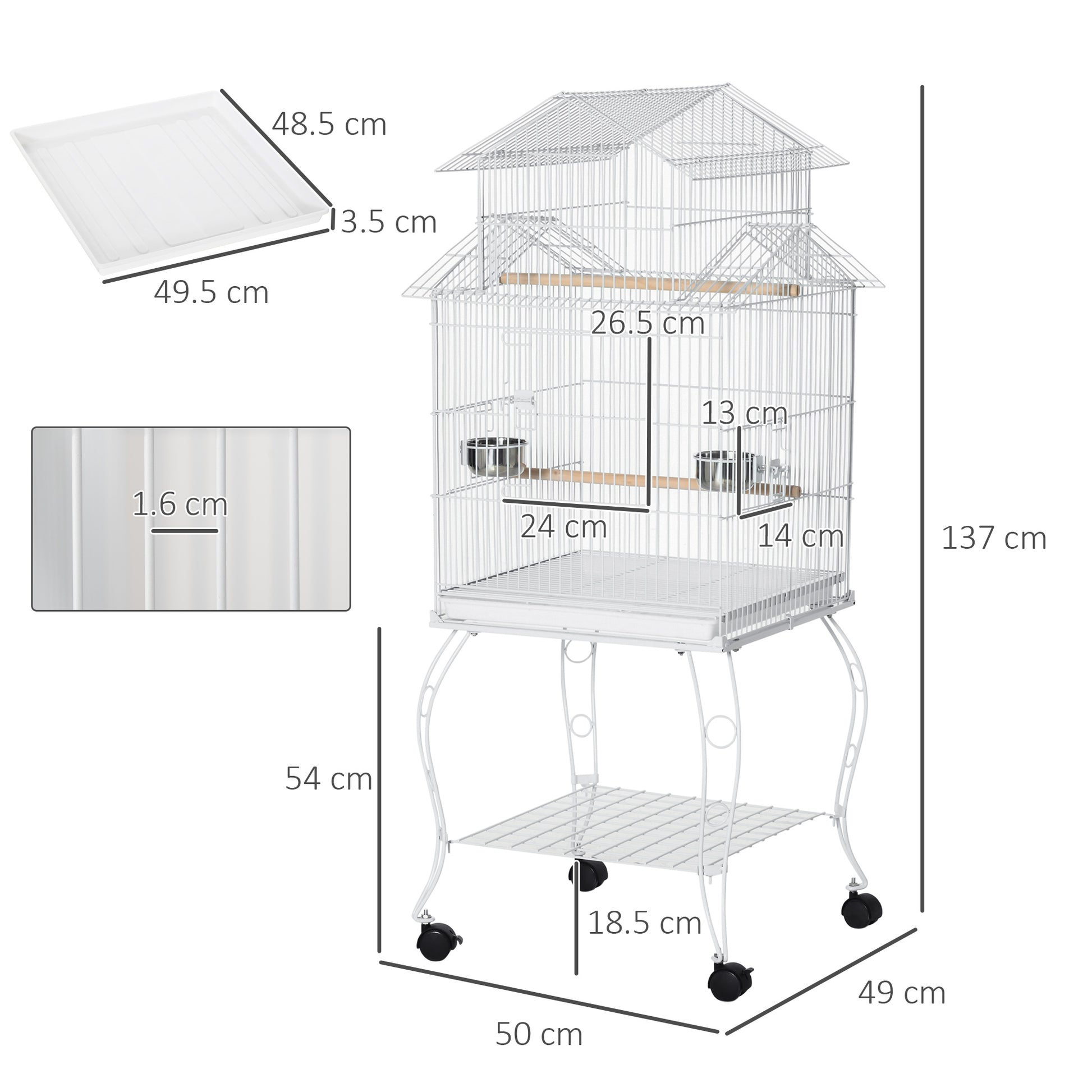 PawHut Vogelkooi met Wielen Grote Kooi met Stand Vogelhuisje met Verwijderbare Lade Deuren Voeders Perches en Onderste Plank voor Cockatiel Budgie Zon Conure 50x49x137 cm Wit