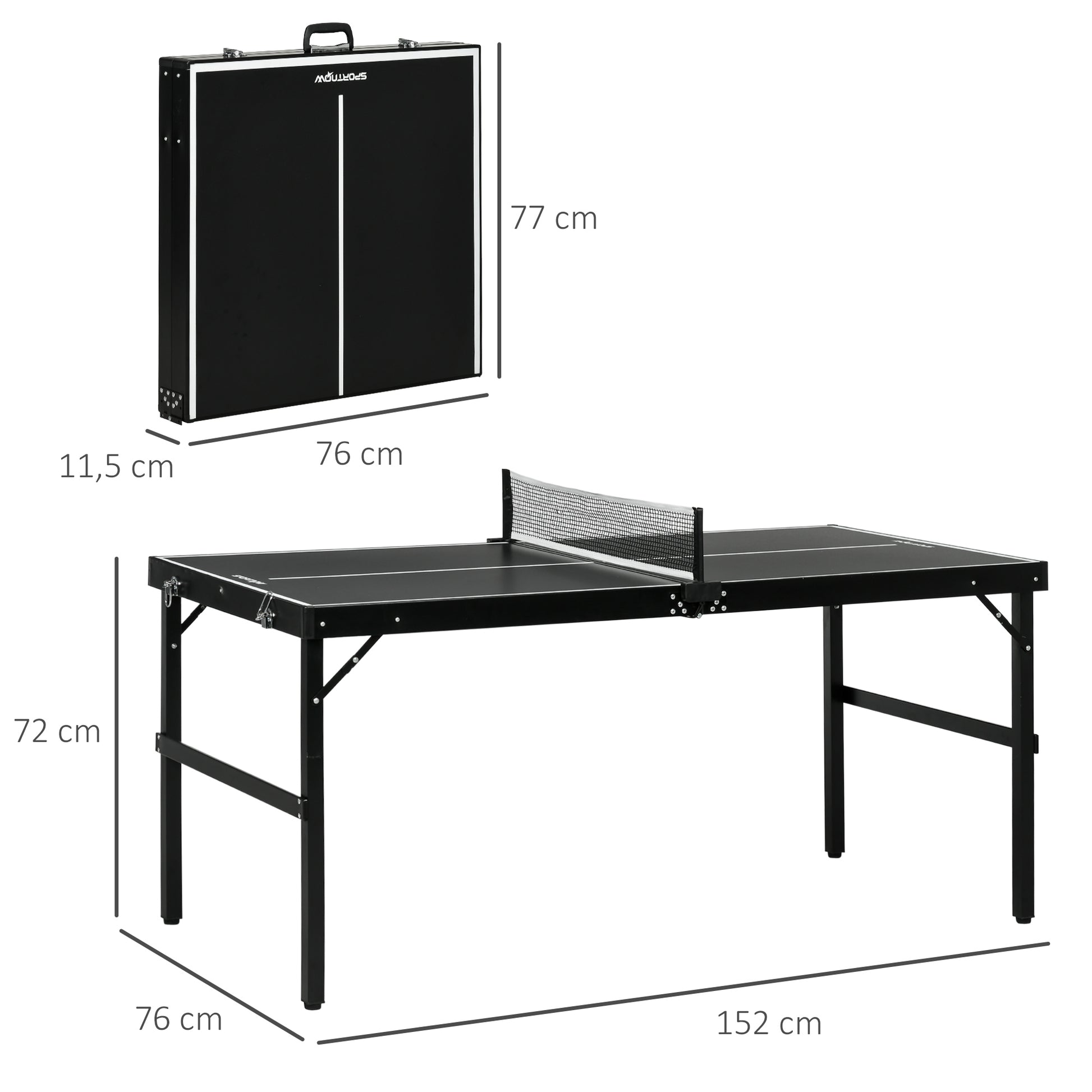 SPORTNOW Opklapbare Pingpongtafel met Aluminium Frame - Draagbare Tennis Tafel met Net voor Binnen en Buiten 152x76x72 cm Zwart