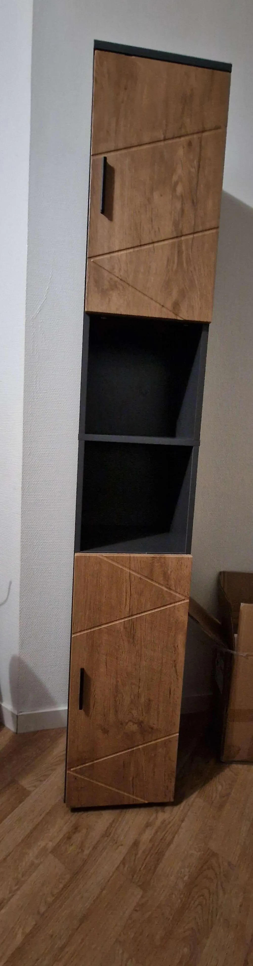 Bathroom Storage Column Cabinet 2 Doors Adjustable Shelf 2 Niches Toilet Cabinet 30 x 30 x 183 cm Dark Oak