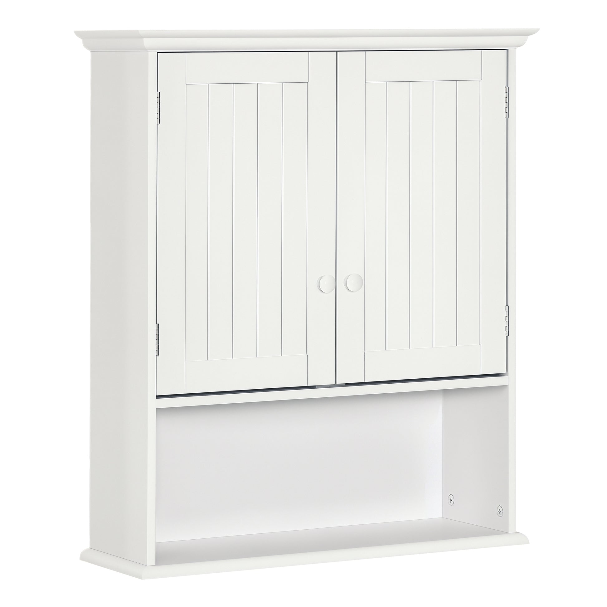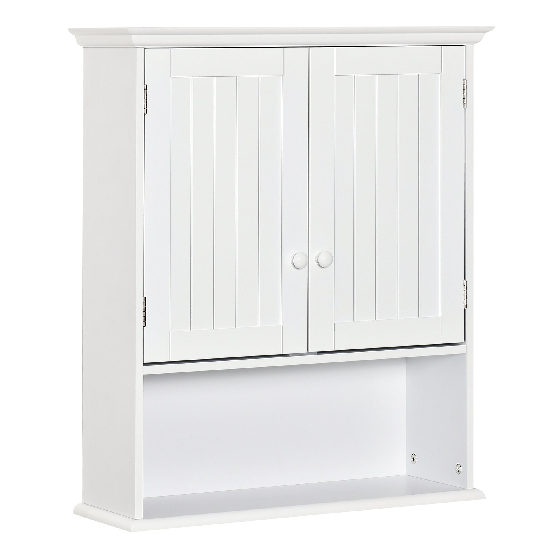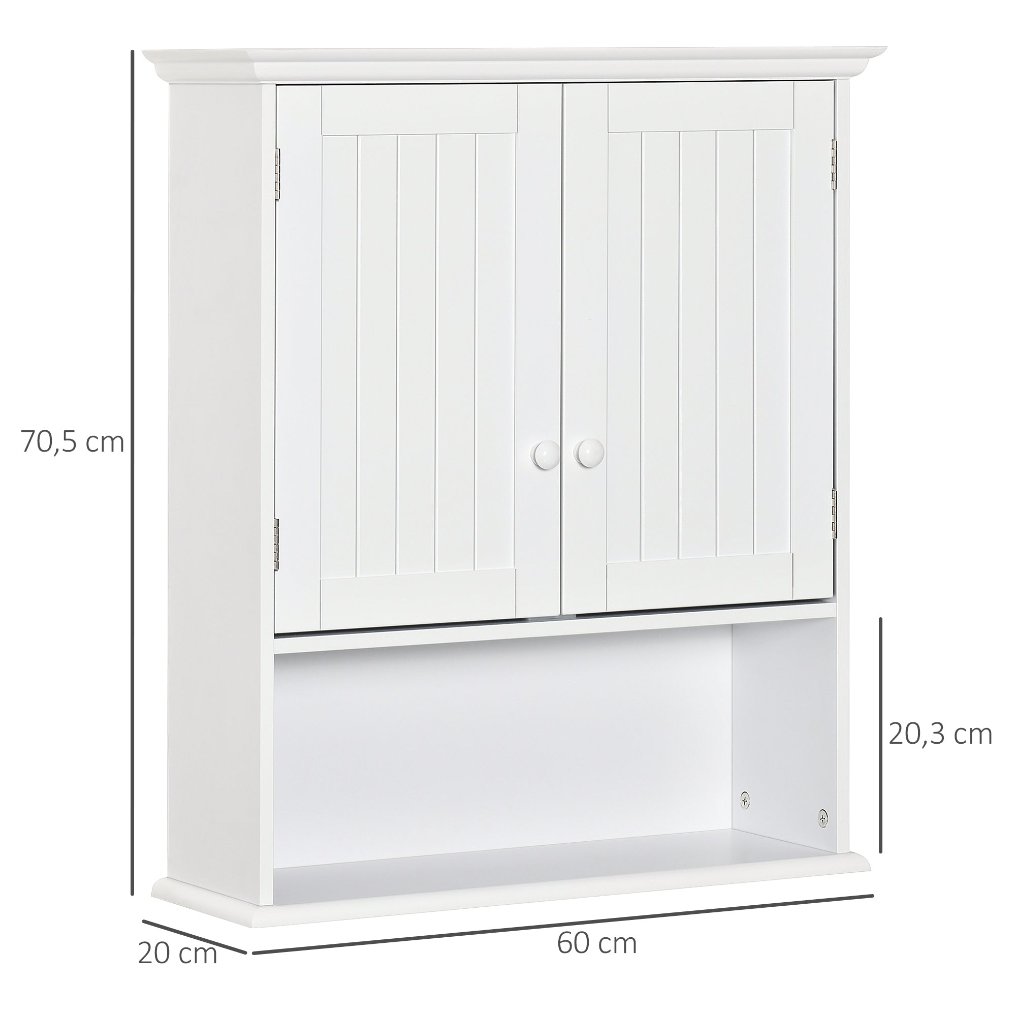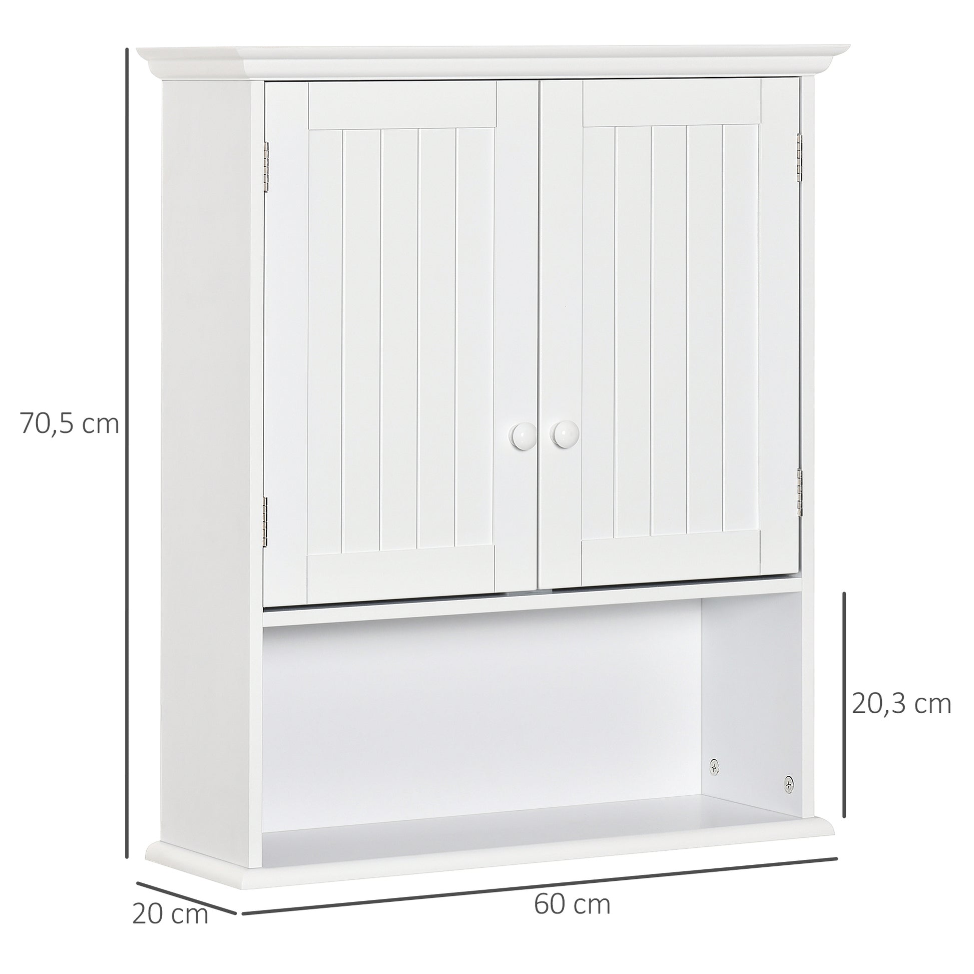 Bathroom Wall Cabinet with 2 Doors Adjustable Inner Shelf and Open Compartment Suspended Auxiliary Furniture Multi-Purpose for Kitchen 60x20x70.5 cm White