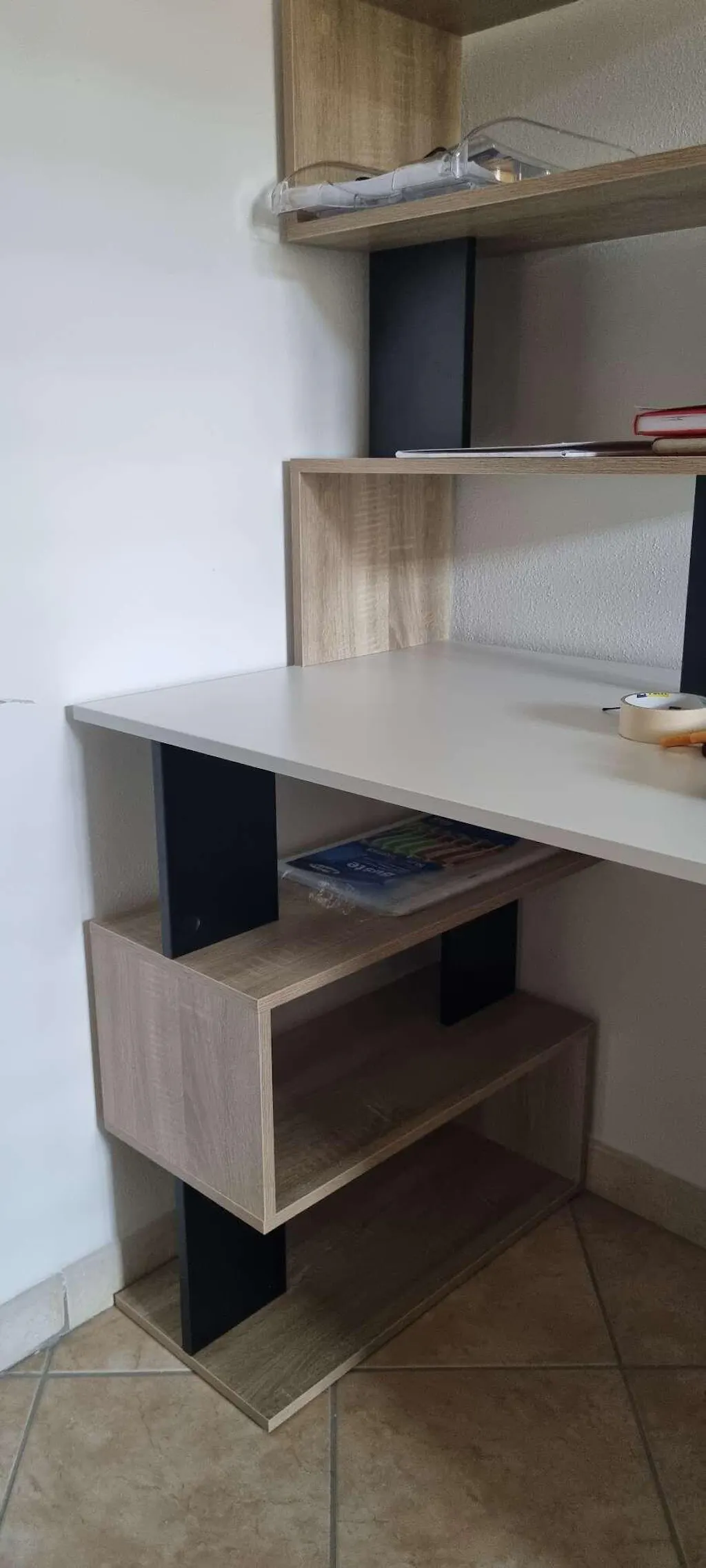 - - DESK WITH BOOKCASE: This office desk features a practical bookcase with open shelves, perfect for organizing books, documents, and stationery.