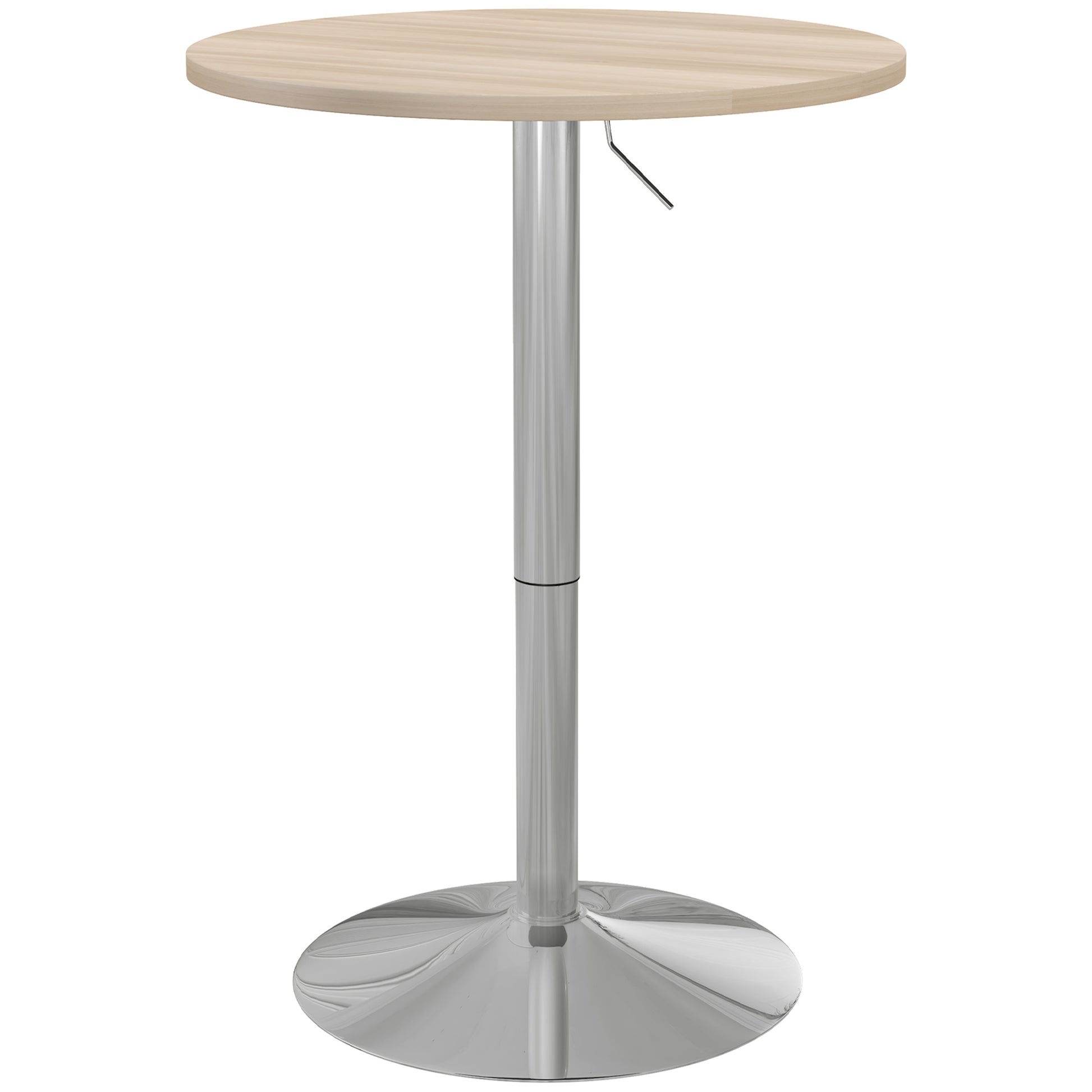 Round Bar Table High Kitchen Table Adjustable Height 69-91 cm with 360° Rotating Tabletop Natural and Gray Steel Base