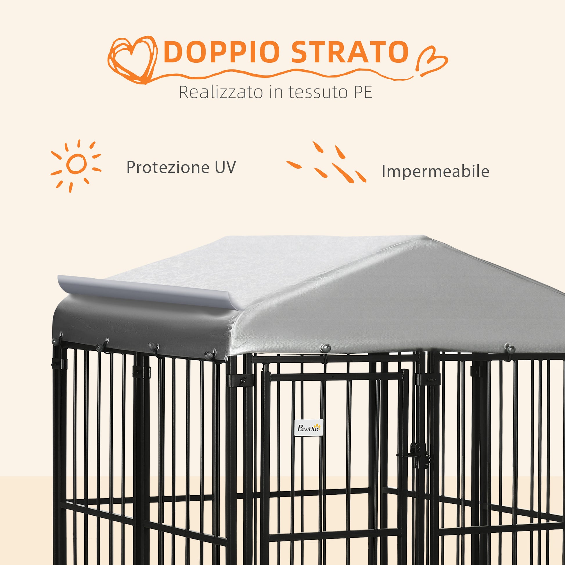 Small to Medium Dog Enclosure, Kennel House for Dogs and Chickens with Roof, 122x122x138cm