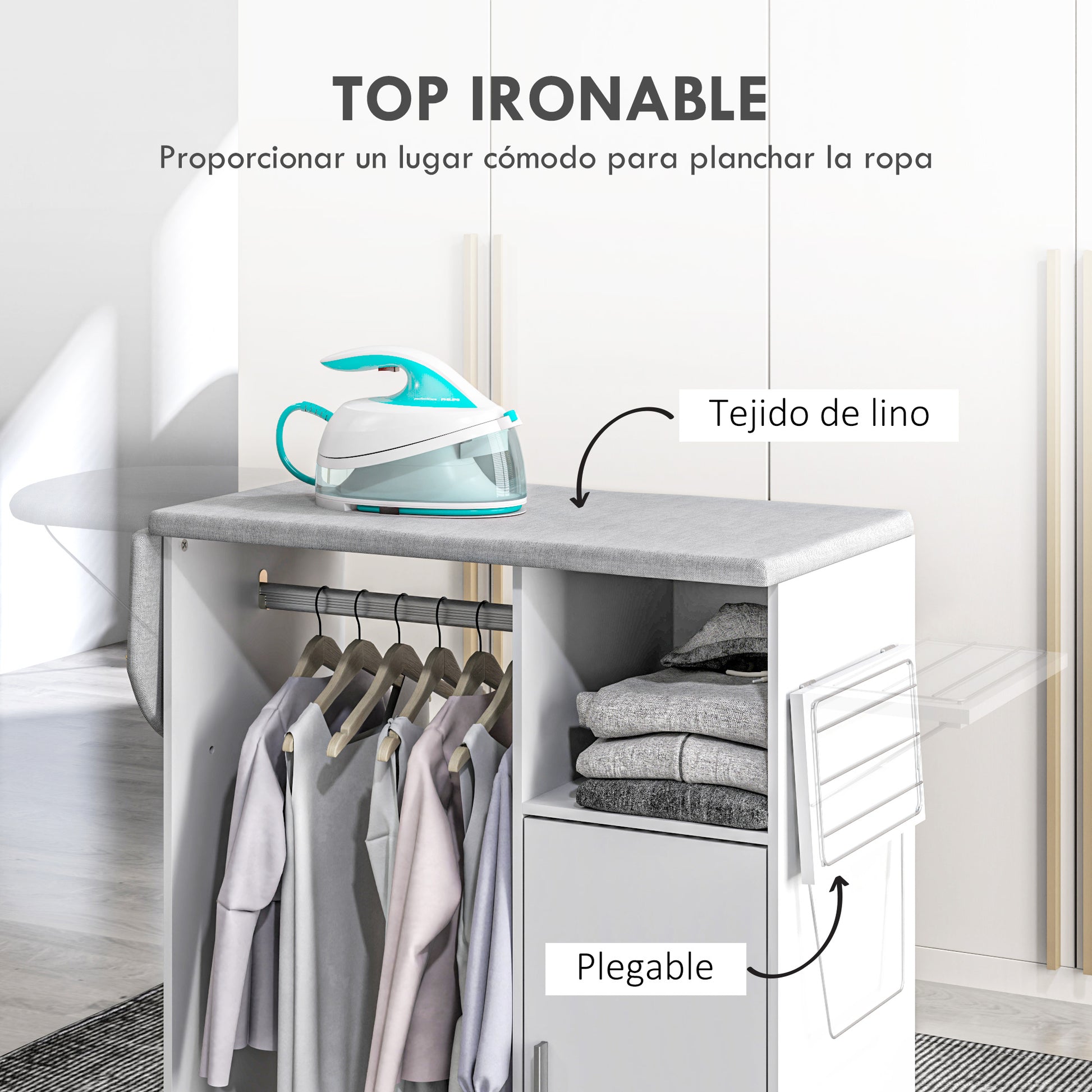 - - FOLDABLE AND VERSATILE IRONING CABINET: The top of this ironing cabinet with board is padded and covered with a linen-effect fabric for comfortable ironing. It also has a side shelf designed to keep your iron within reach. Both the top and side shelf can be folded to save space when not in use