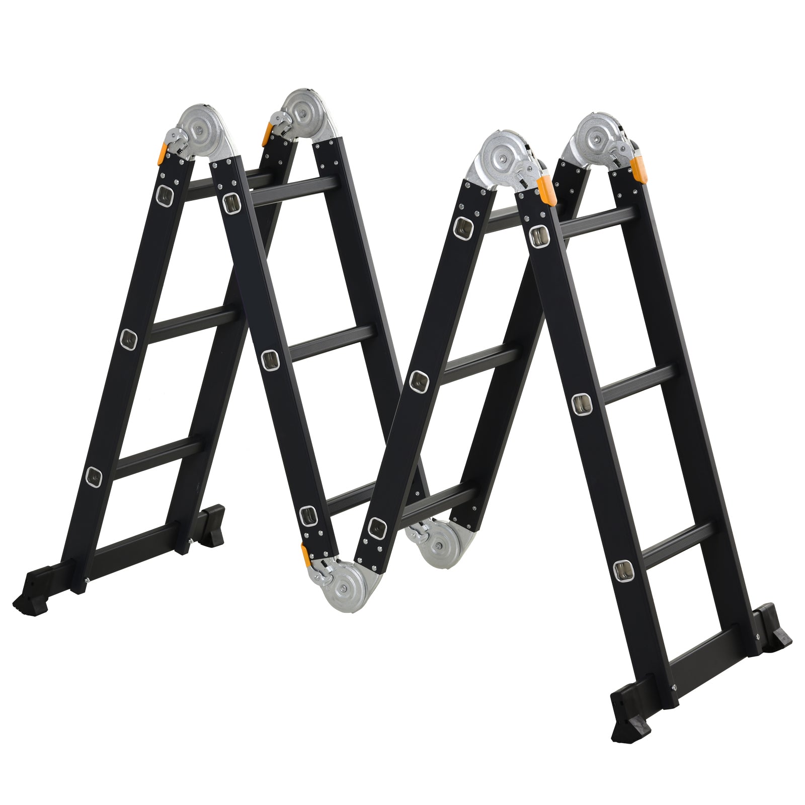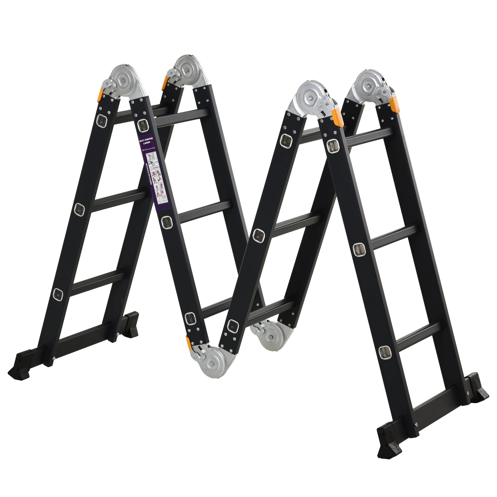 - - VIACÚČELOVÝ: Jeho dizajn umožňuje použitie ako klasický rebrík, A-rámový rebrík, ale aj ako lešenie umiestnením základných dosiek.