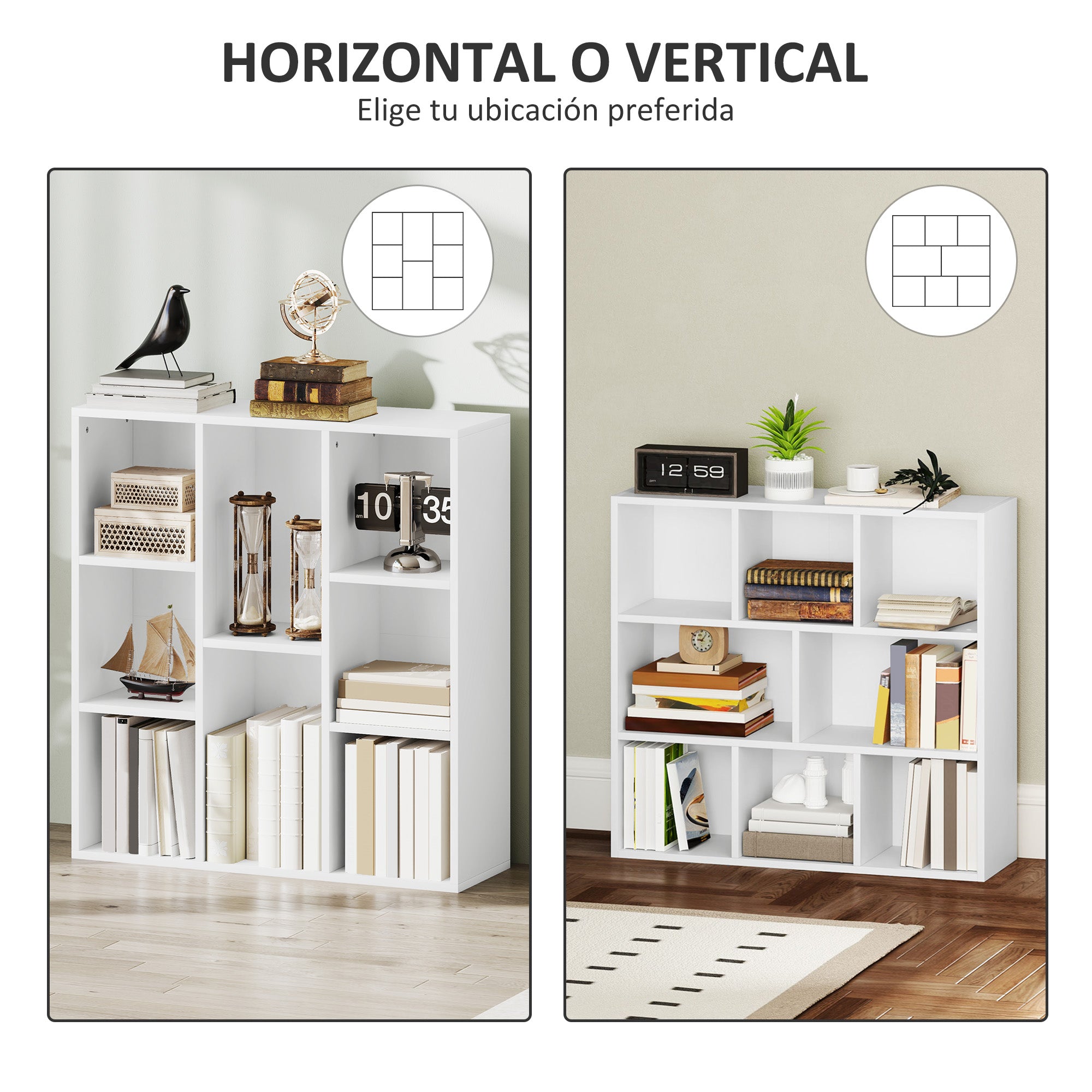 HOMCOM 3-policová knižnica s 8 priehradkami, vertikálny alebo horizontálny dizajn do obývacej izby, kancelárie, spálne 74,3x24x80 cm Biela