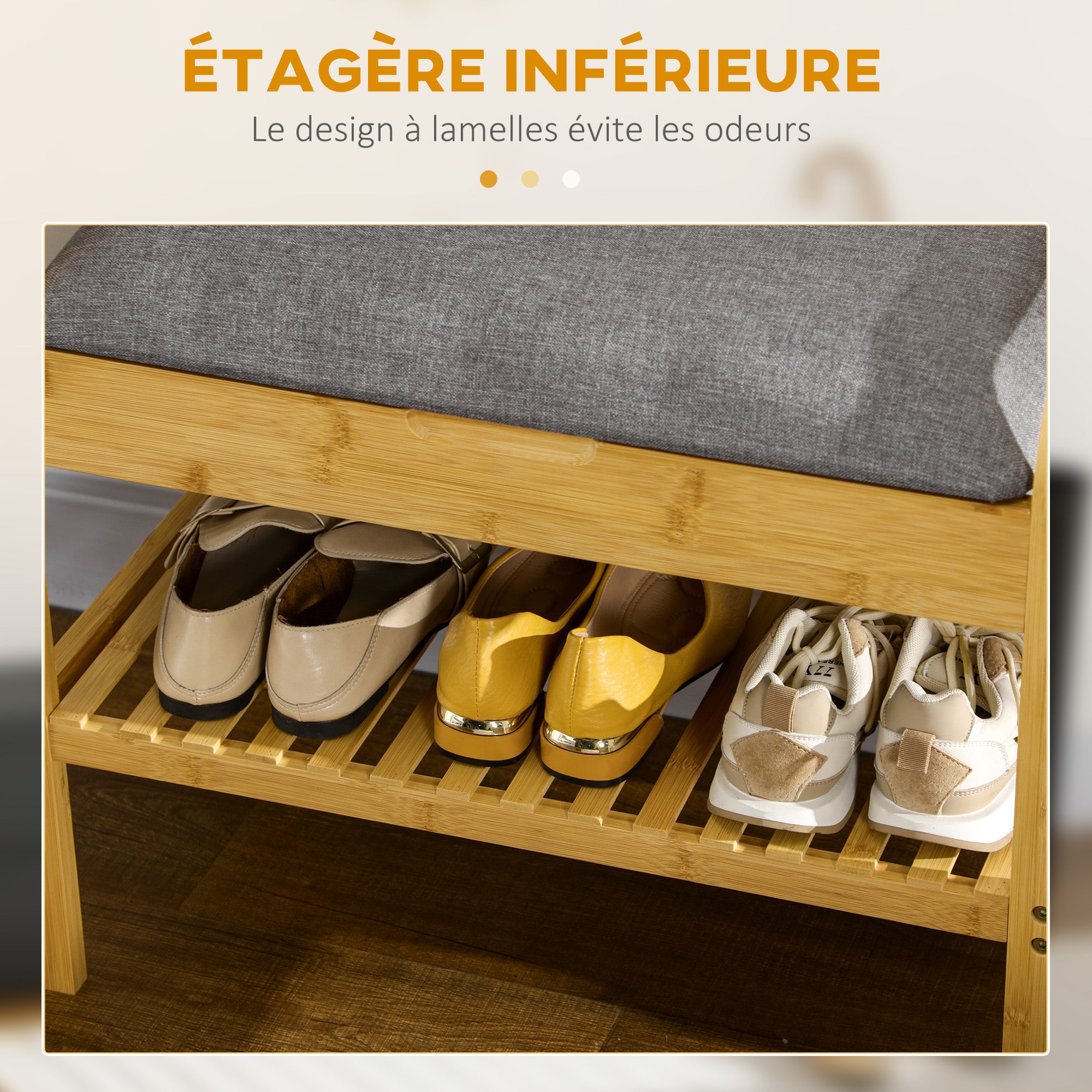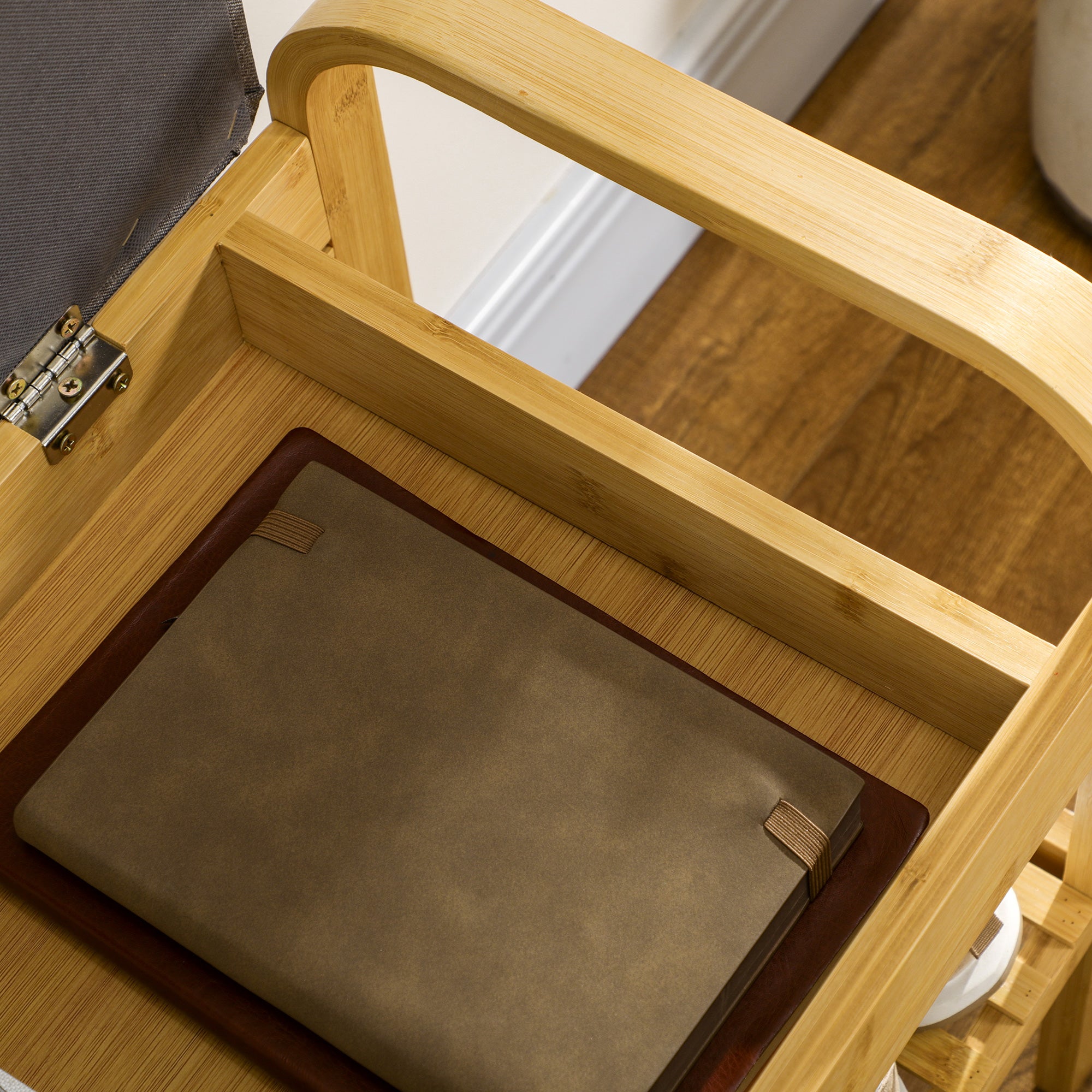 HOMCOM Benches na topánky s vankúšom, úložným priestorom a skrytým oddielom, s bambusovou policou, pre obývaciu izbu, predsieň, spálňu, 60 x 33 x 50 cm, prírodné