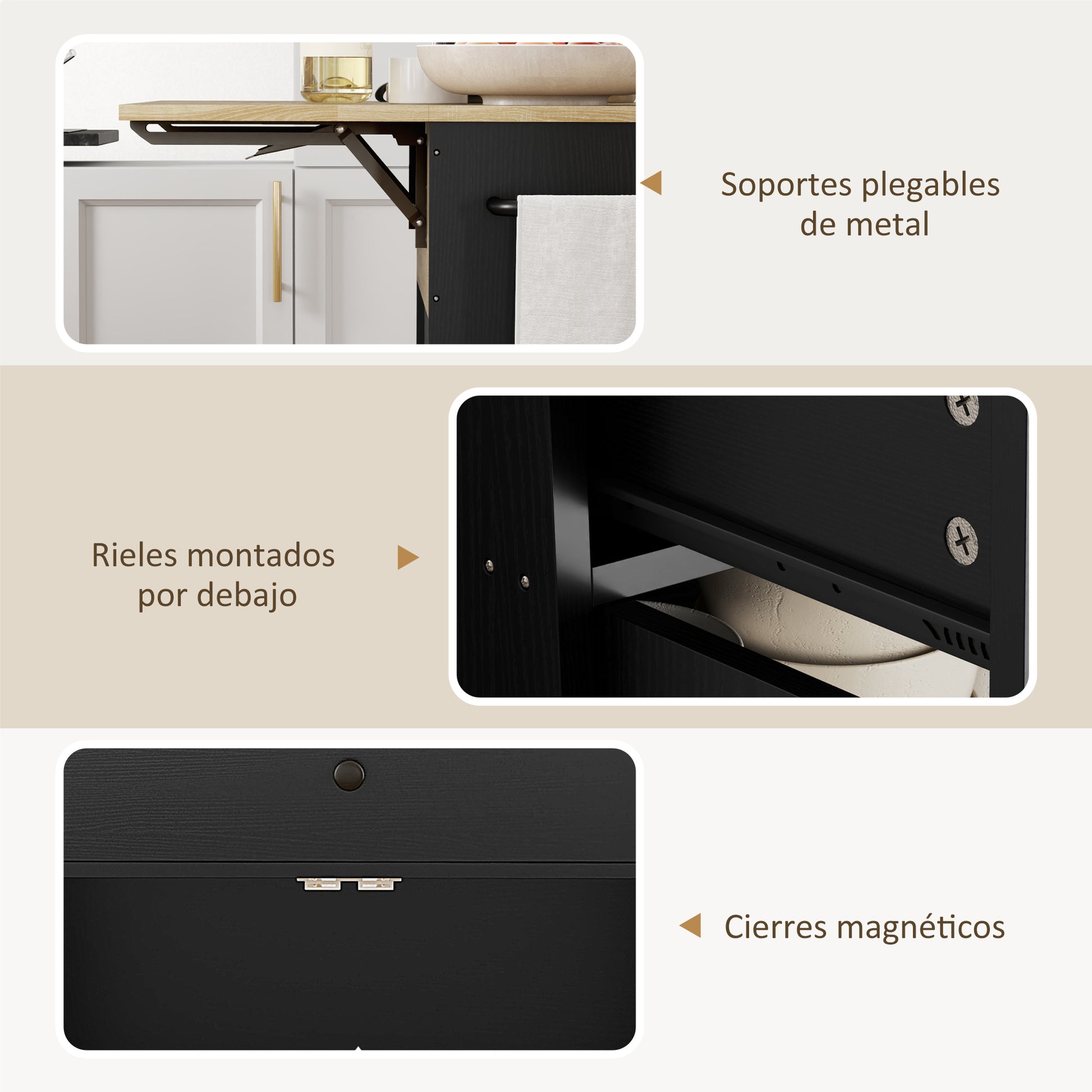 - - VYUŽITE KAŽDÝ KÚT VO VAŠEJ KUCHYNI: Tento kuchynský ostrov obsahuje sklopnú dosku a sklopné kovové tripódy na rozšírenie alebo zmenšenie povrchu podľa potreby, ideálne pre malé priestory