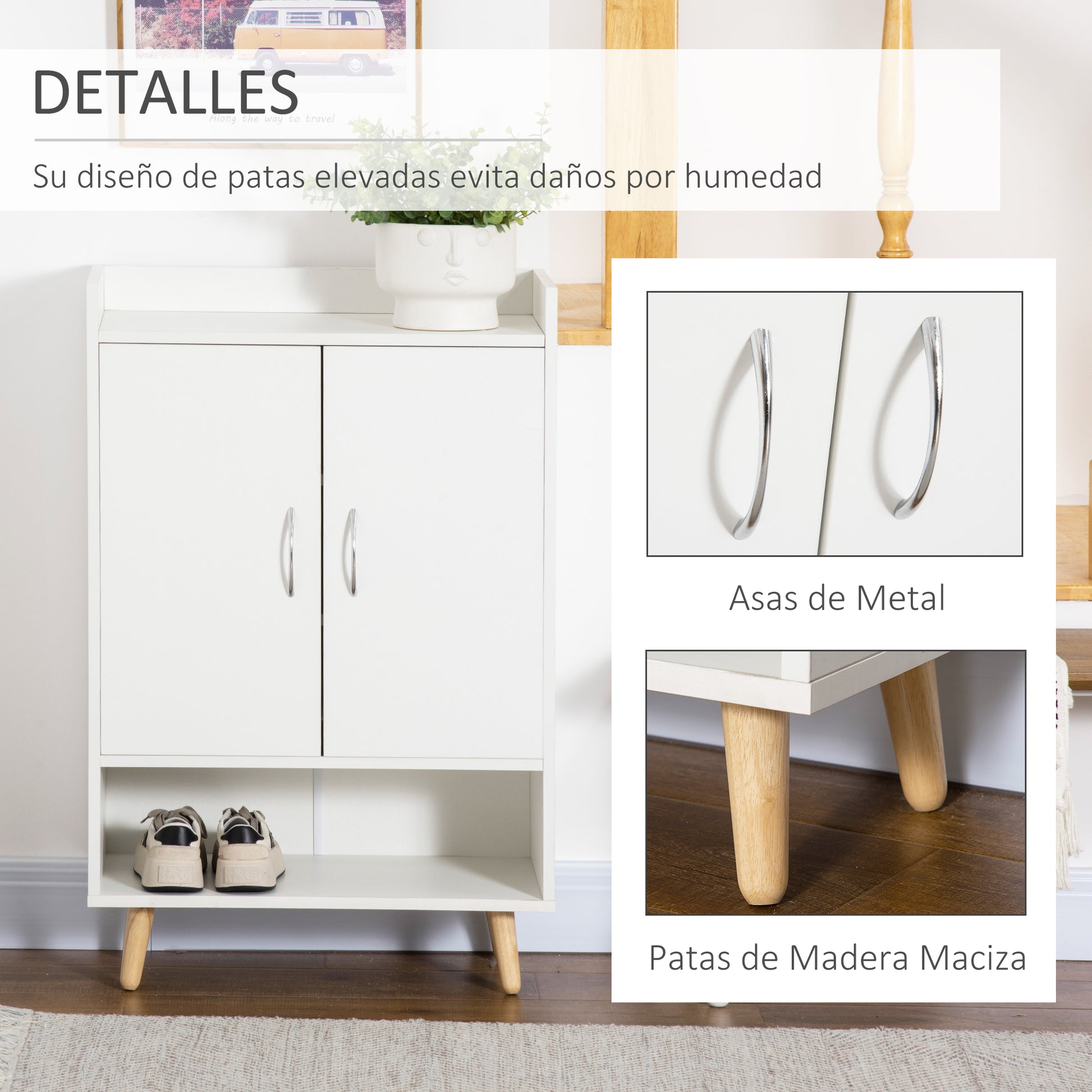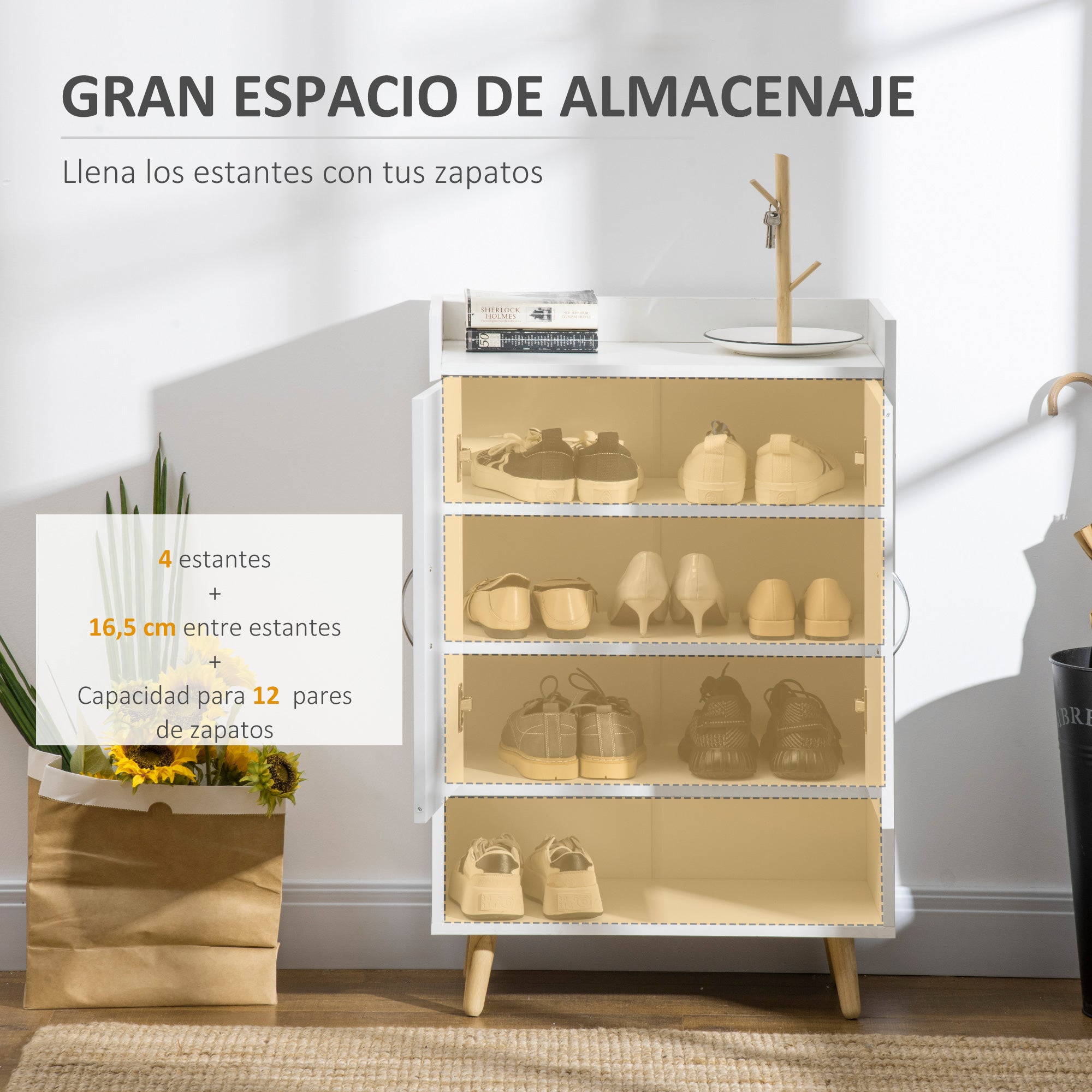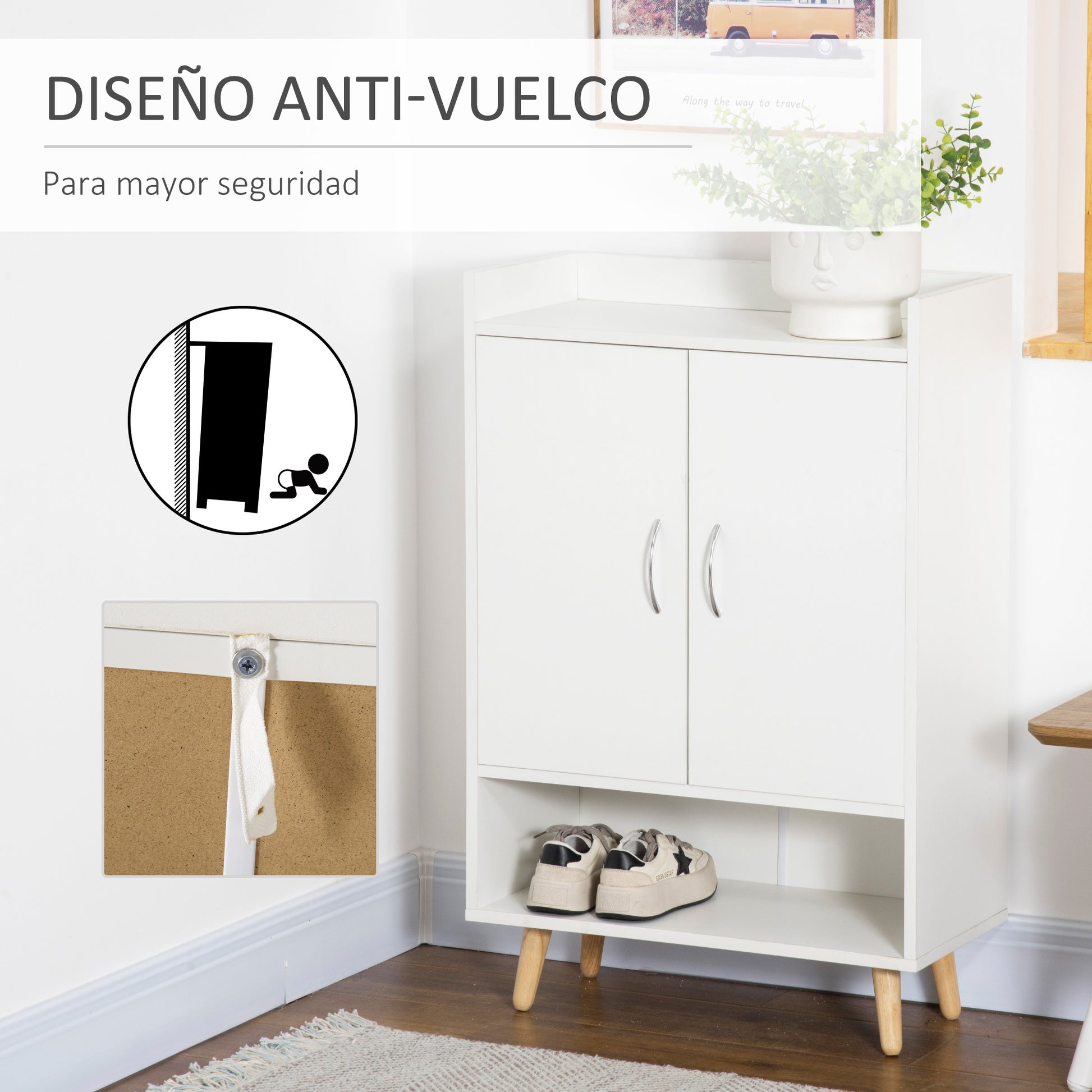 - - PEVNÁ KONŠTRUKCIA: Tento botník do predsiene je vyrobený z odolného a ľahko udržiavateľného melamínového dreva. 4 nohy z masívneho dreva ponúkajú väčšiu stabilitu a vzadu má protišmykové zariadenie na upevnenie k stene.