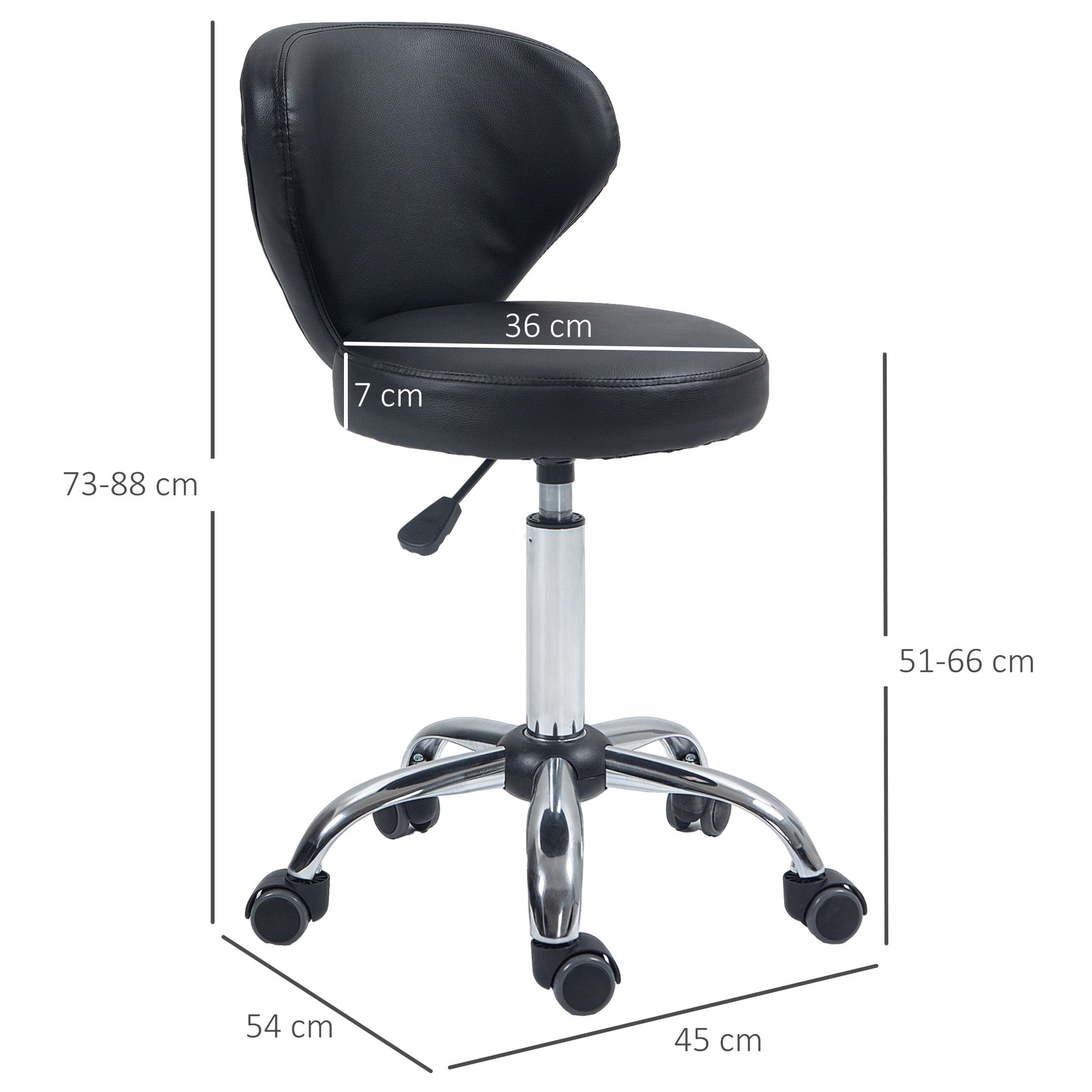 HOMCOM nastaviteľný otočný salónny stôl s opierkou a kolieskami, pracovný stôl do kancelárie a obývačky, umelá koža, 45 x 54 x 73-88 cm, čierny