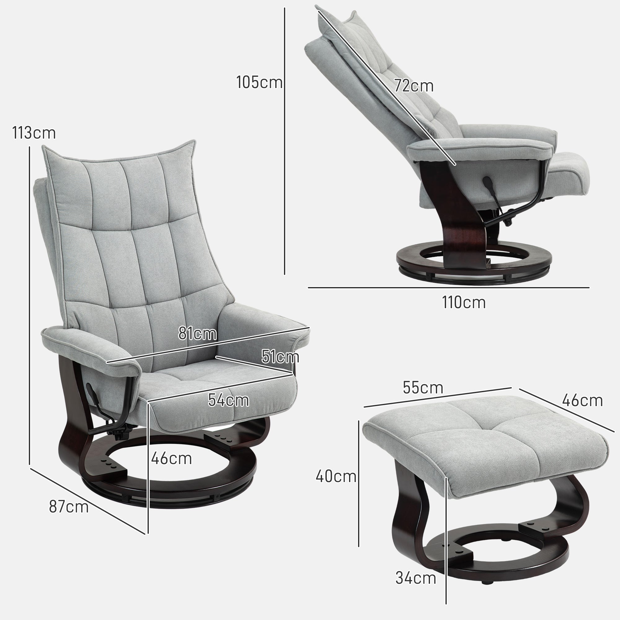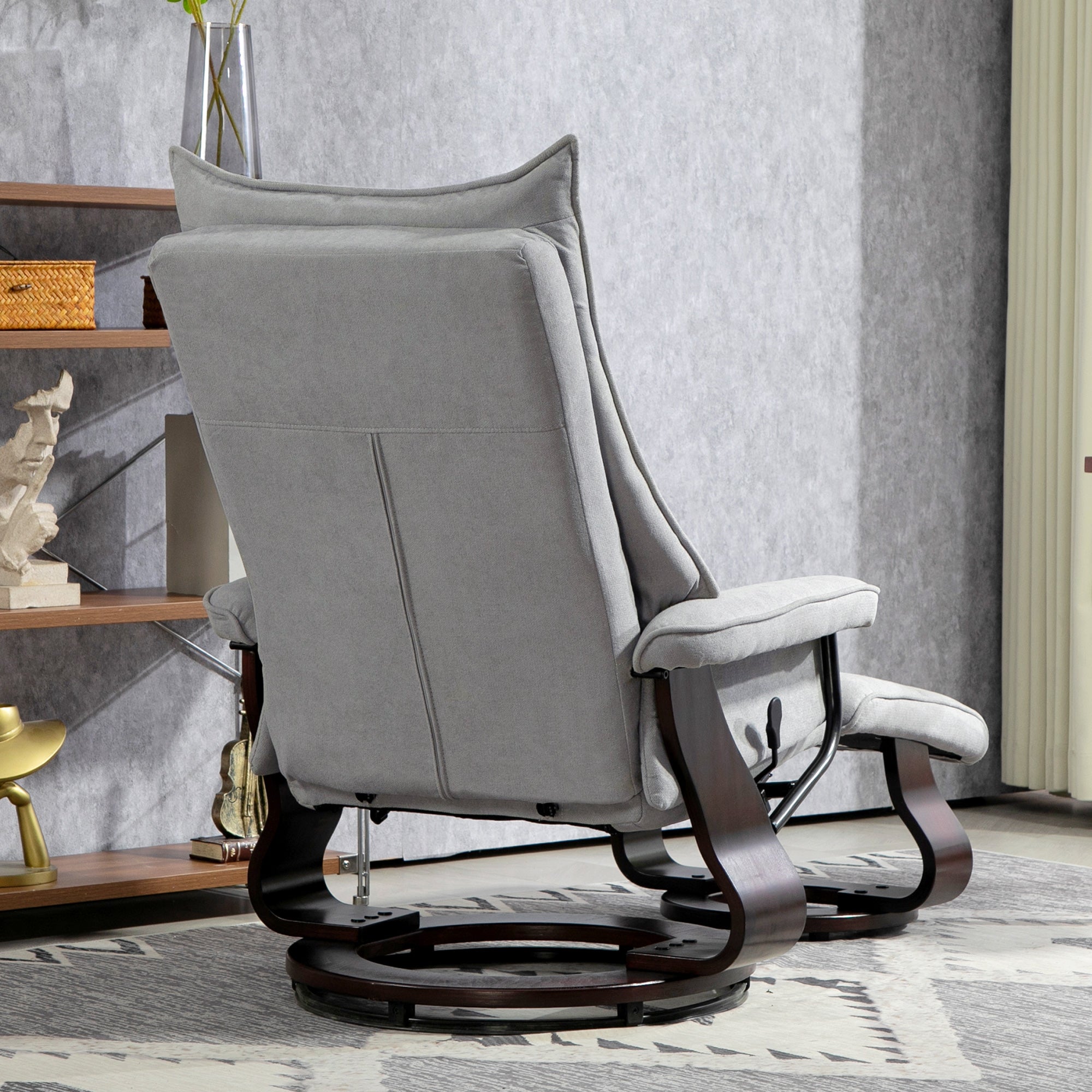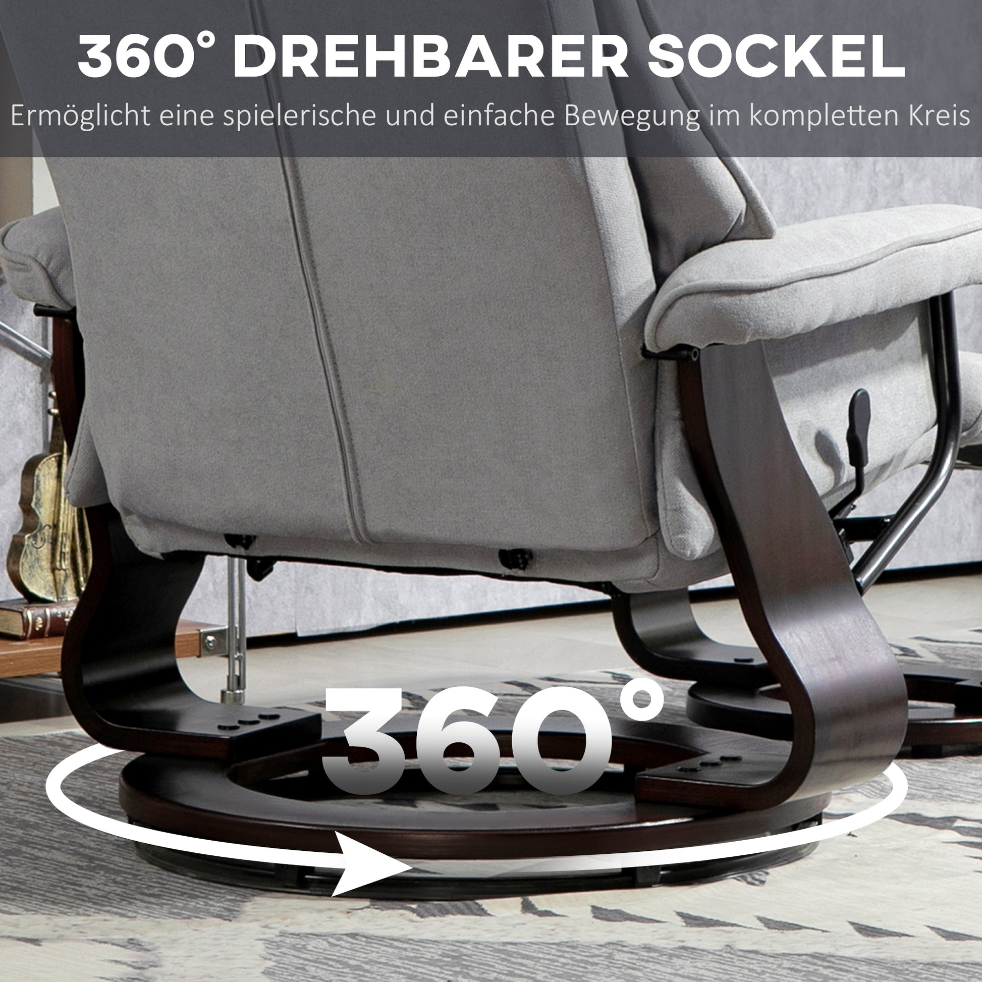 HOMCOM Relaxačné kreslo s podnožkou, otočné TV kreslo s funkciou polohovania, hojdačkové kreslo s dvojvrstvovým vysokým operadlom, vzhľad zamatu, do obývačky, spálne, sivé