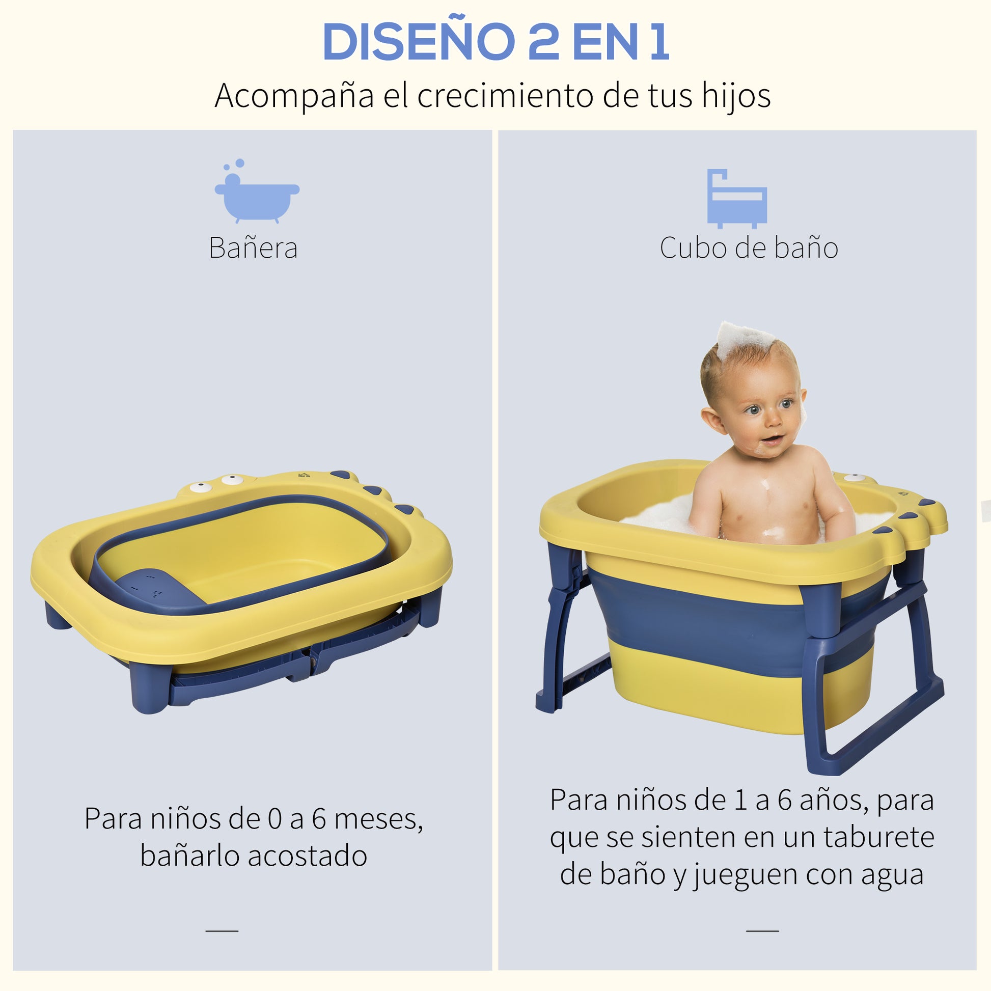 HOMCOM Sklápacia detská vaňa pre deti od 0 do 6 rokov, kapacita 105L, 75,3x55,4x43 cm, prenosná vaňa pre deti s protiskluzovými nohami a odtokovým otvorom, nosnosť 50 kg, žltá a modrá