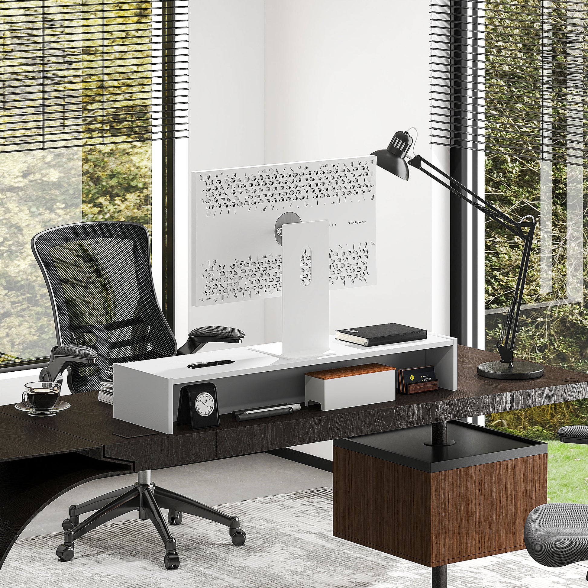 HOMCOM Stojan na PC Monitor s 2 Úložnými Priestorami, Stojan na Stôl z Dreva pre Prenosný Počítač a Monitor, Nosnosť do 16kg, 100x27x15 cm, Biela