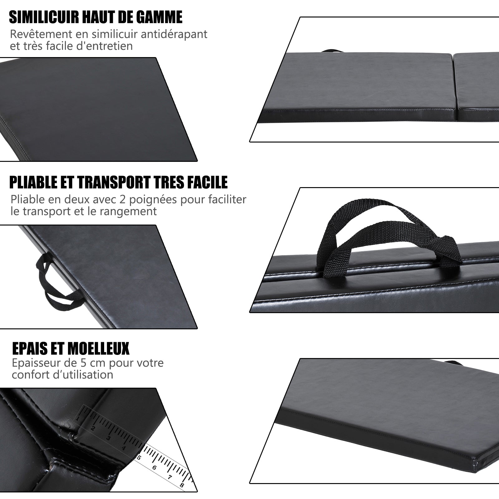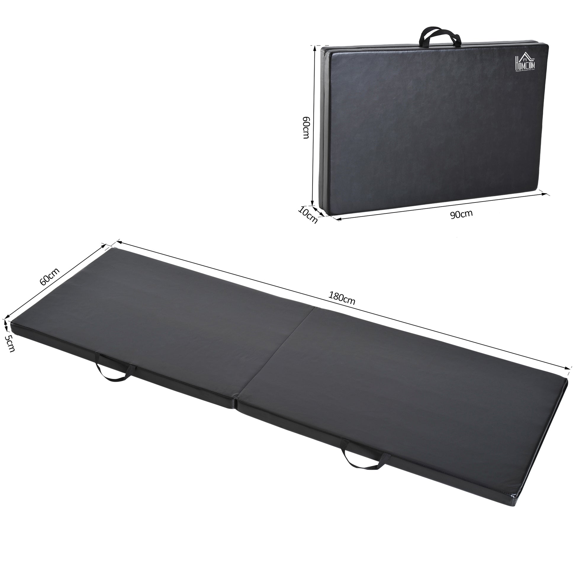 HOMCOM Telesná výchova Jóga Pilates Fitness Skladacia Prenosná Podložka Pohodlná 180D x 60Š x 5V cm Čierny Syntetický Kožený Povrch