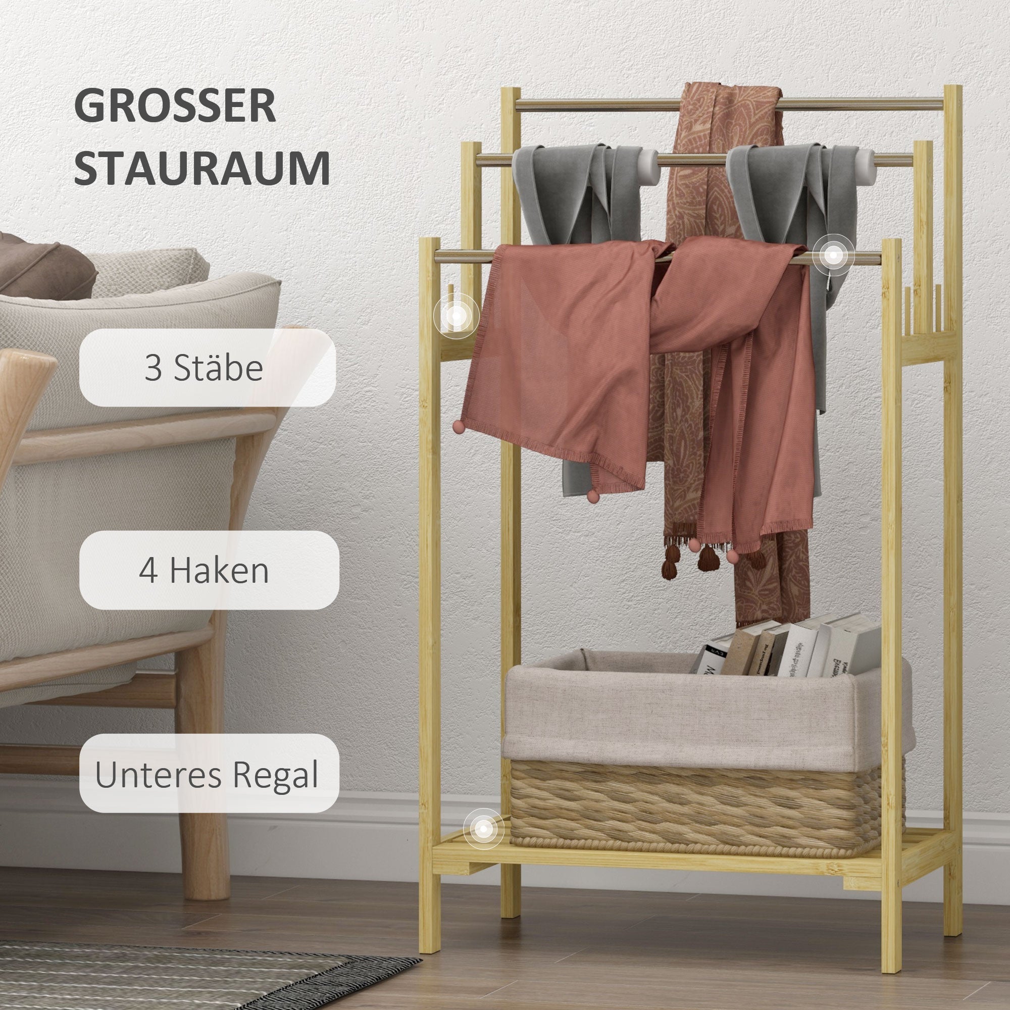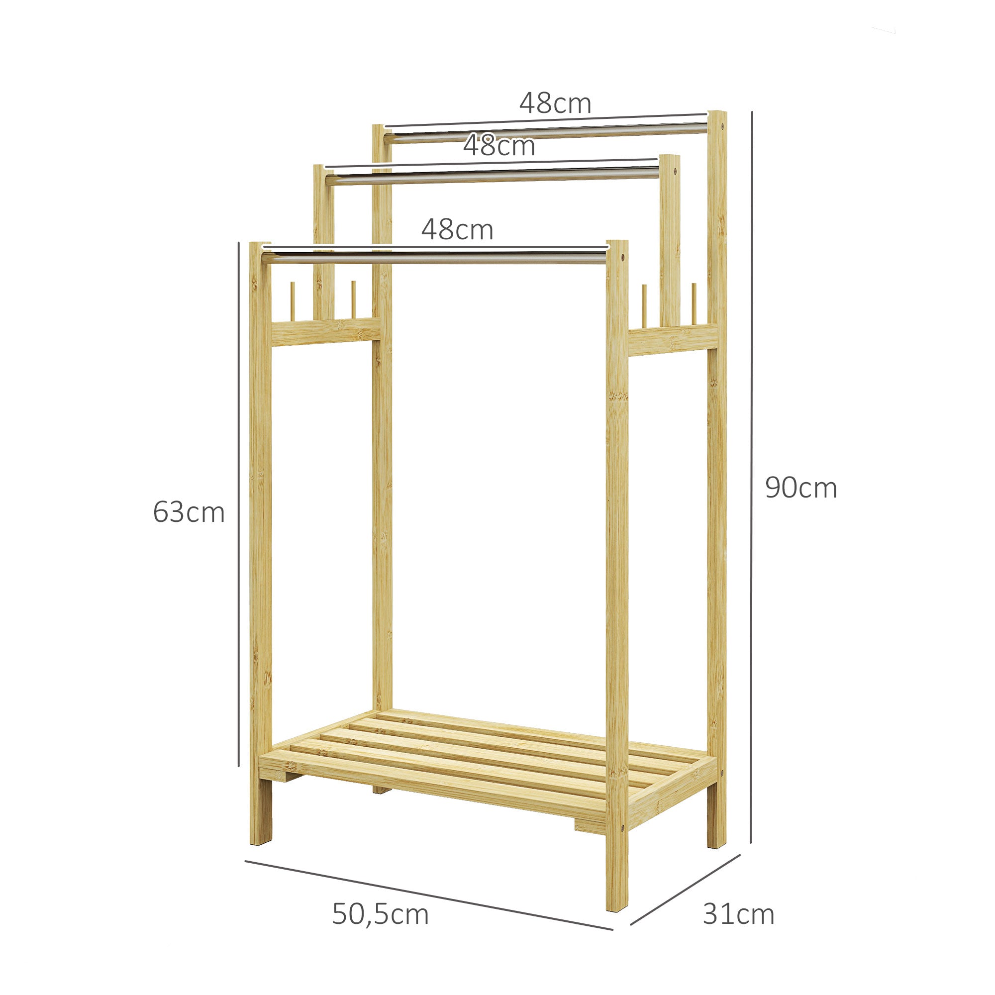 HOMCOM Voľne stojaci držiak na uteráky so 4 háčikmi a 3 tyčami